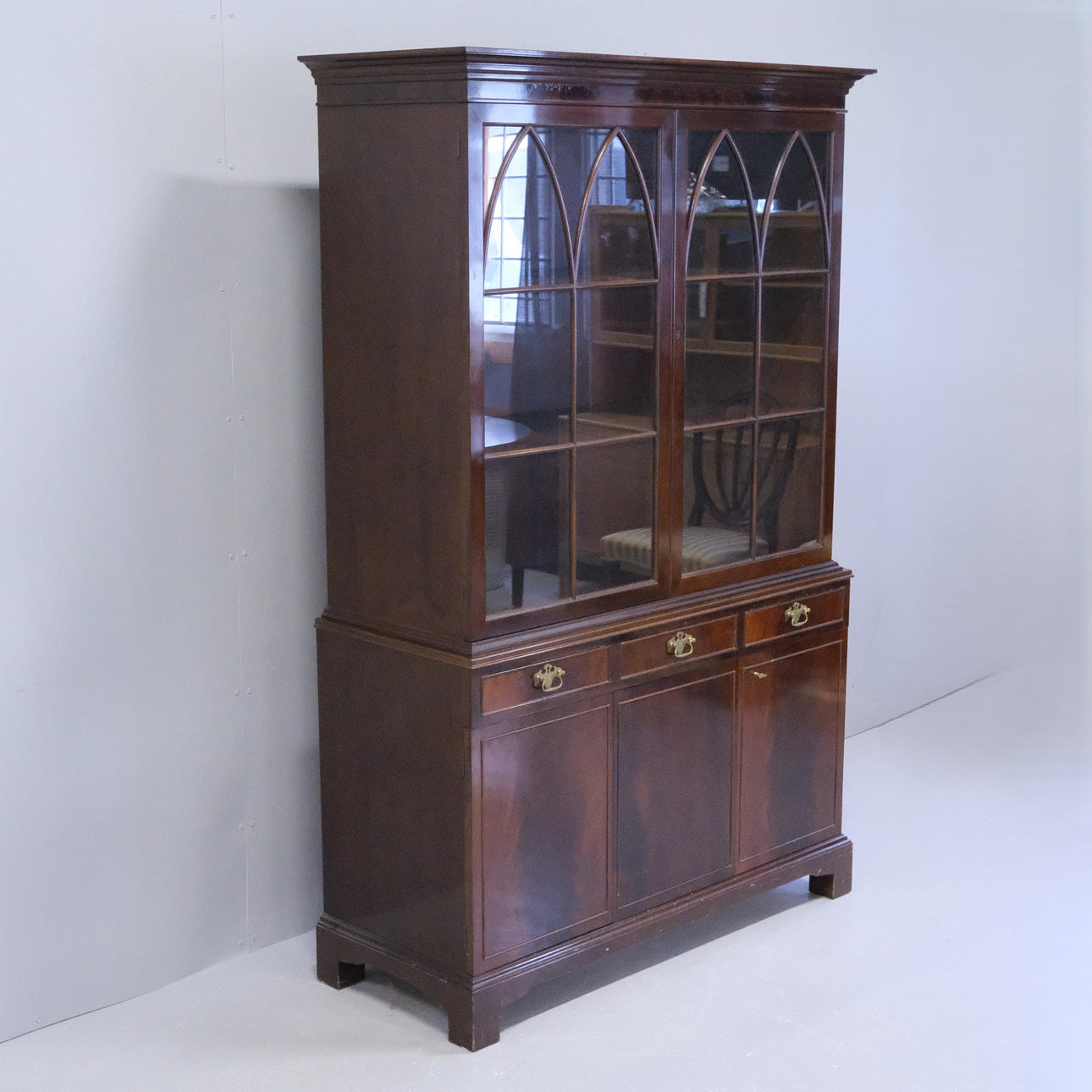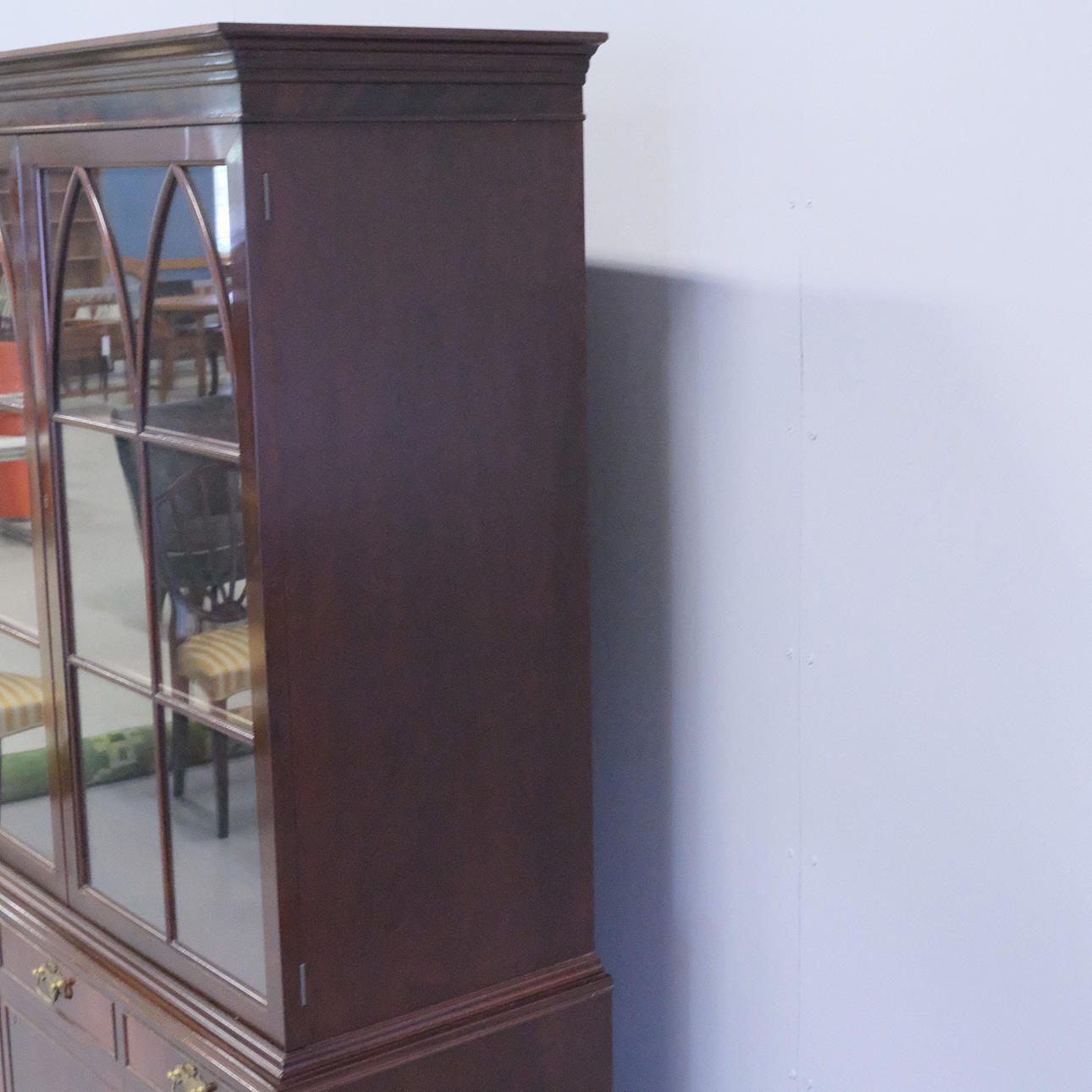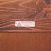 Kaappi vitriinillä, korkeus 182cm, leveys 116cm, syvyys 47cm. Merkitty tunnisteella ”Oscar Edv Ekelunds snickerifabriks AB Viserum”.