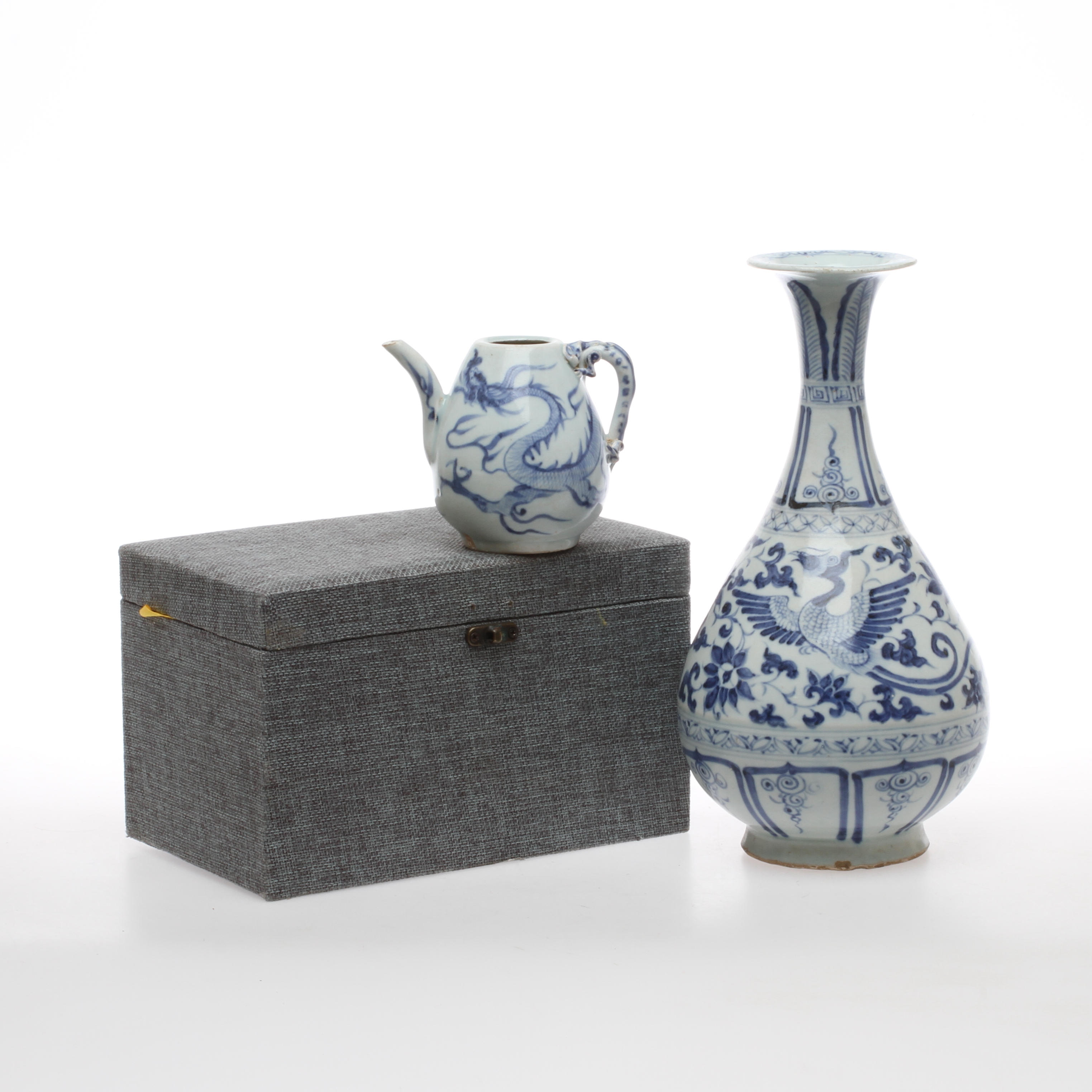449824. Maljakko ja teekannu, posliini, Kiina.