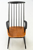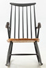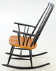 Rakenne on valmistettu mustista lakatuista tankoista ja tuolijaloista sekä juoksijoista. Istuin massiivipuuta, osittain maalattu kirkkaaksi.