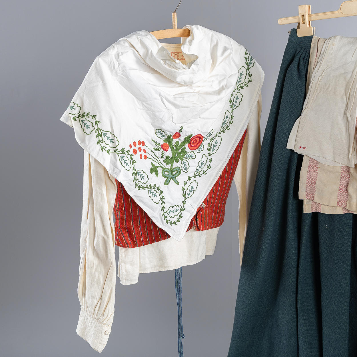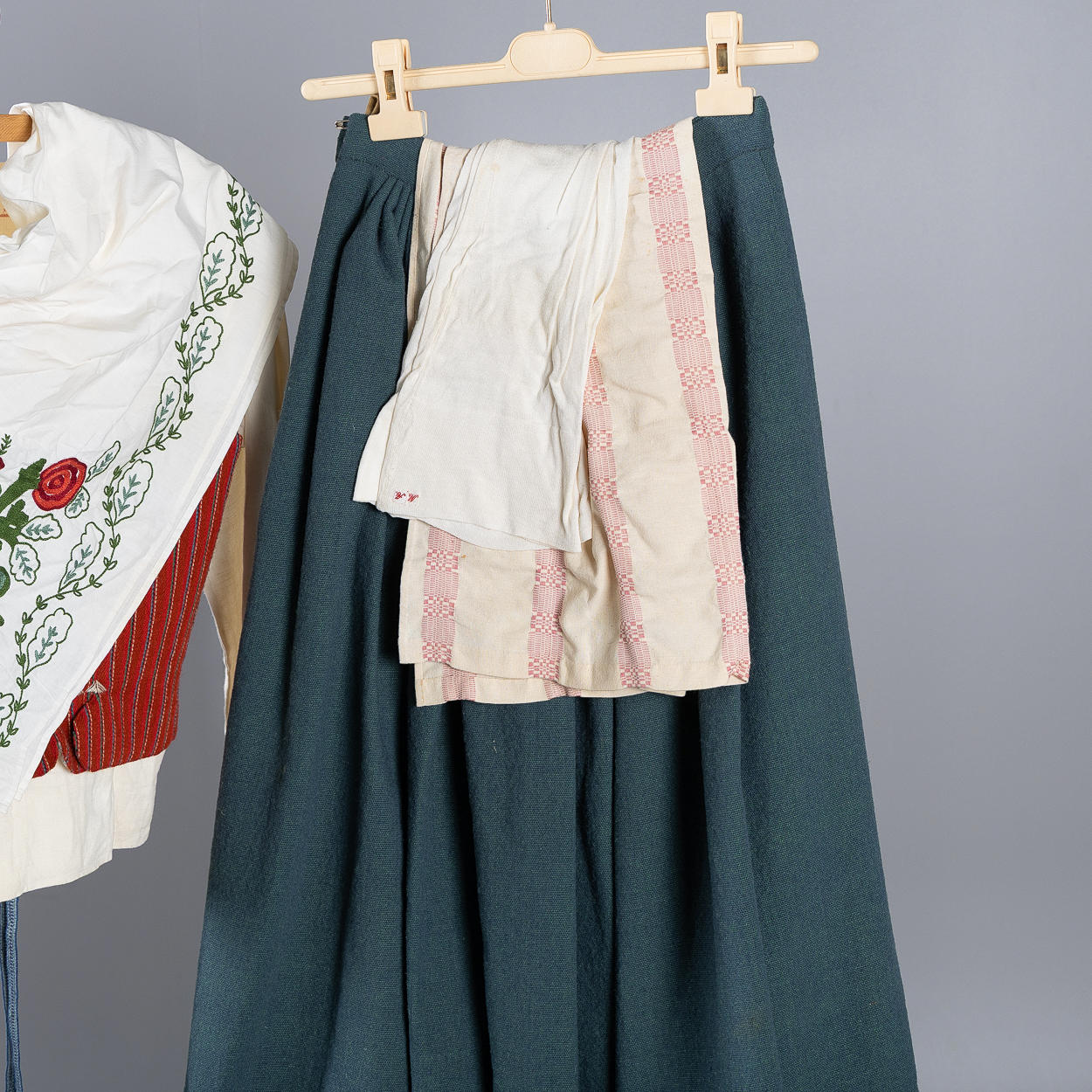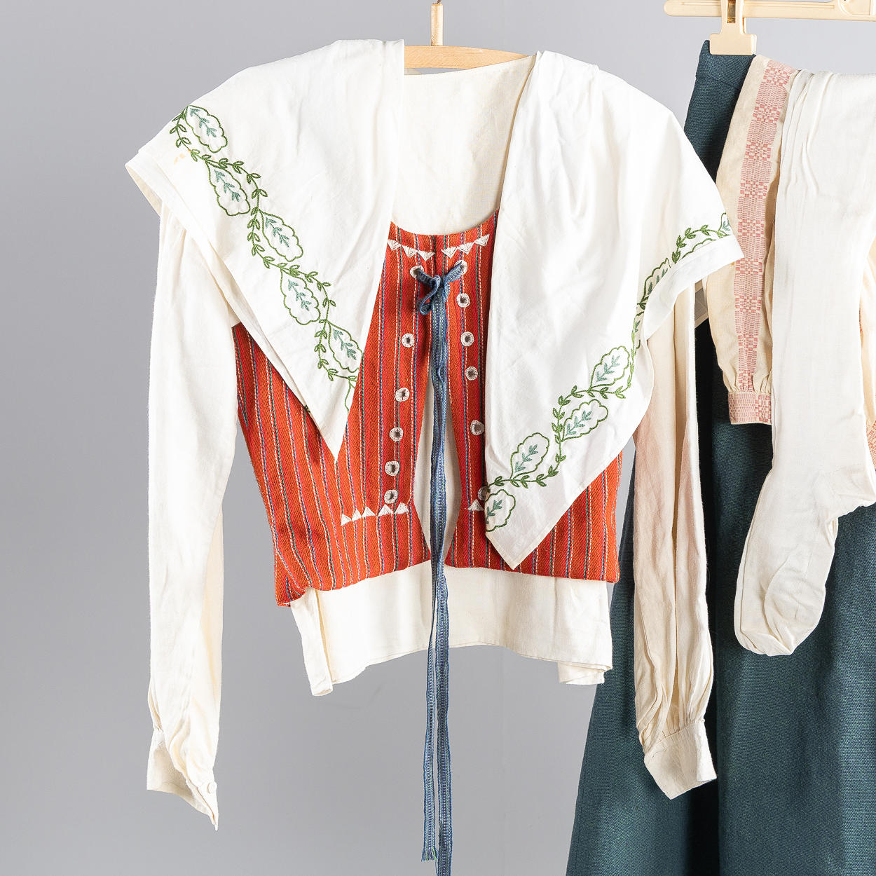 Villaliivi. Vuorattu puuvillakankaalla. Nauhoitus puuvillanauhoilla ja kirjonnalla.
