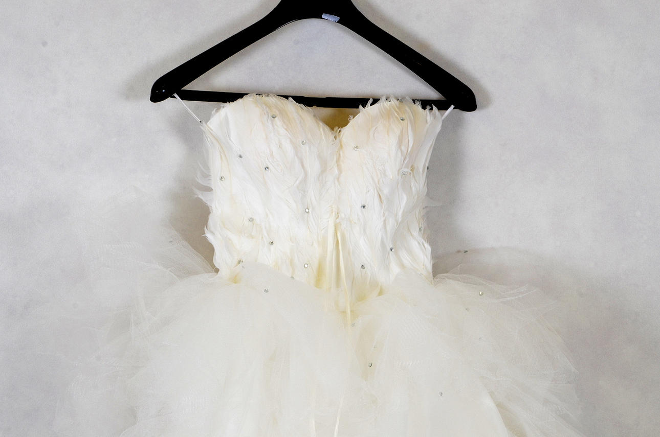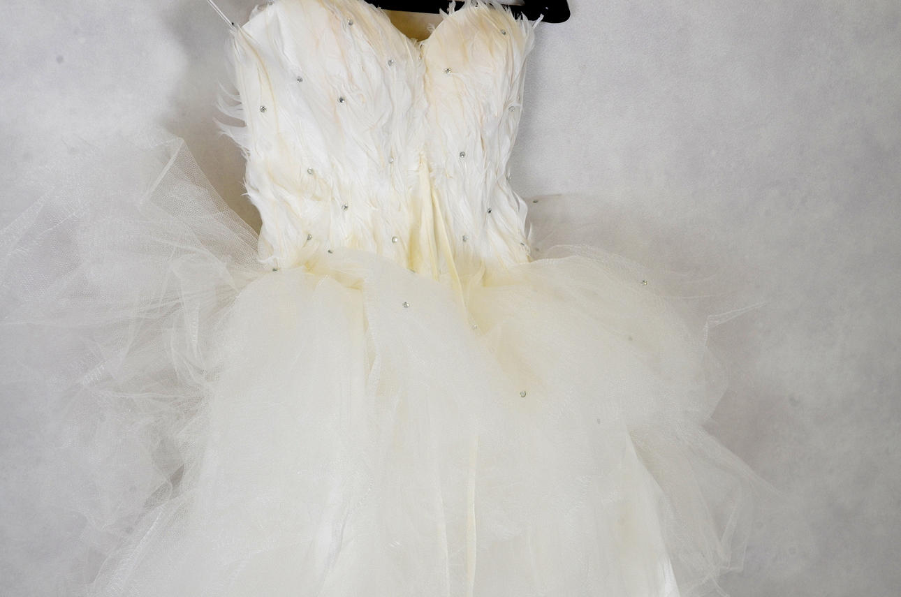 Tyllillä, helmillä ja höyhenillä.
