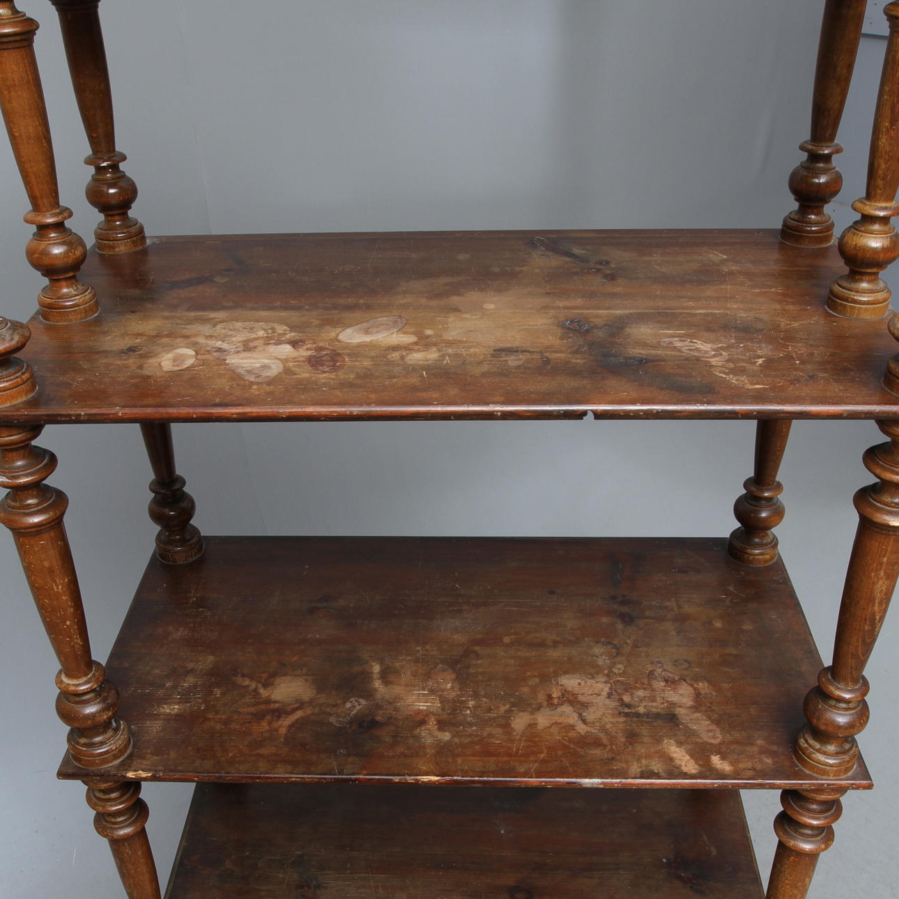 Laajaa kulumaa, naarmuja ja kosteusjälkiä, jälkiä/halkeamia.