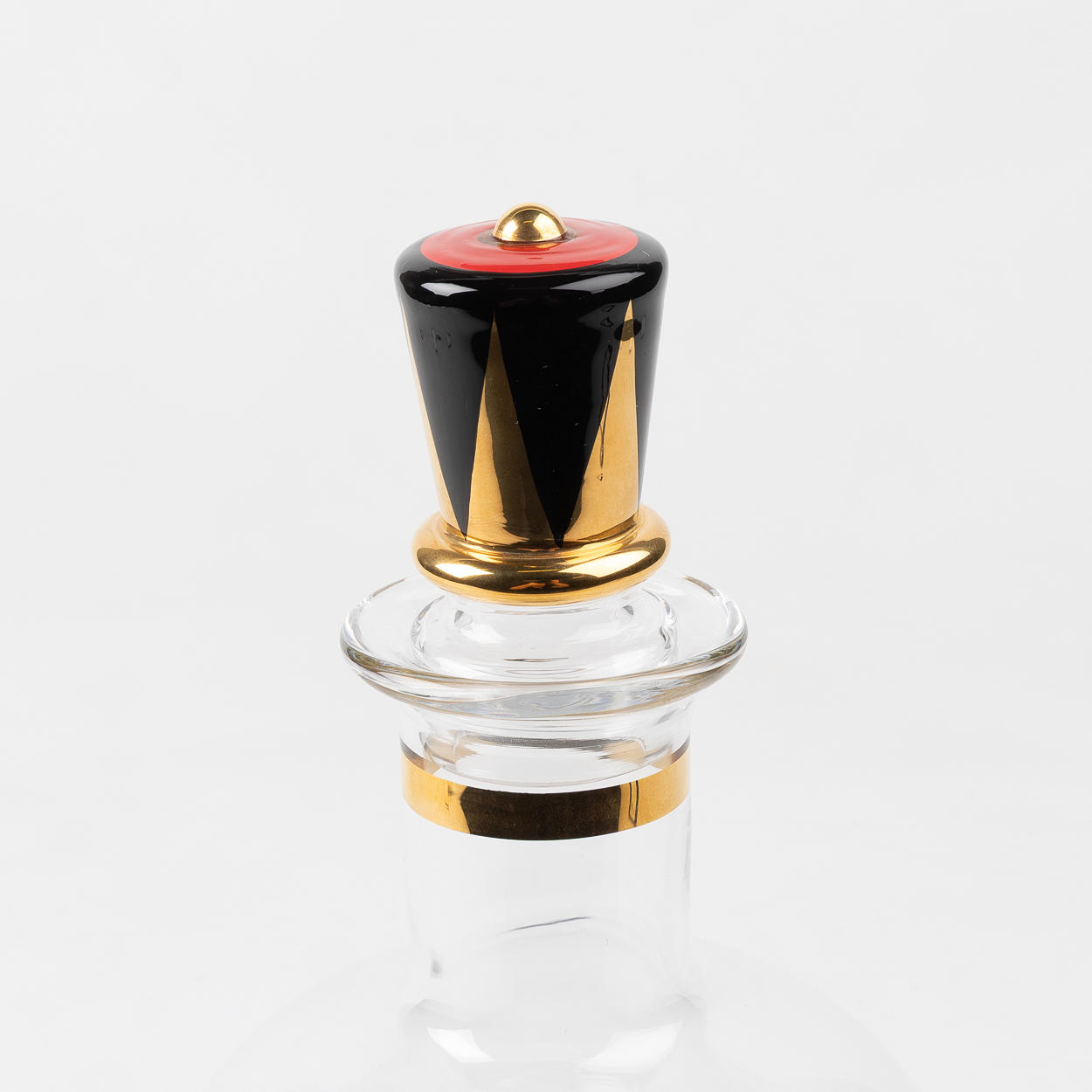 Korkeus 30 cm. Gunnar Cyrénin karahvi punaisen ja kullan värisellä sisustuksella Orrefors Nobel -sarjaan. Merkitty. Alkuperäisessä pakkauksessa.