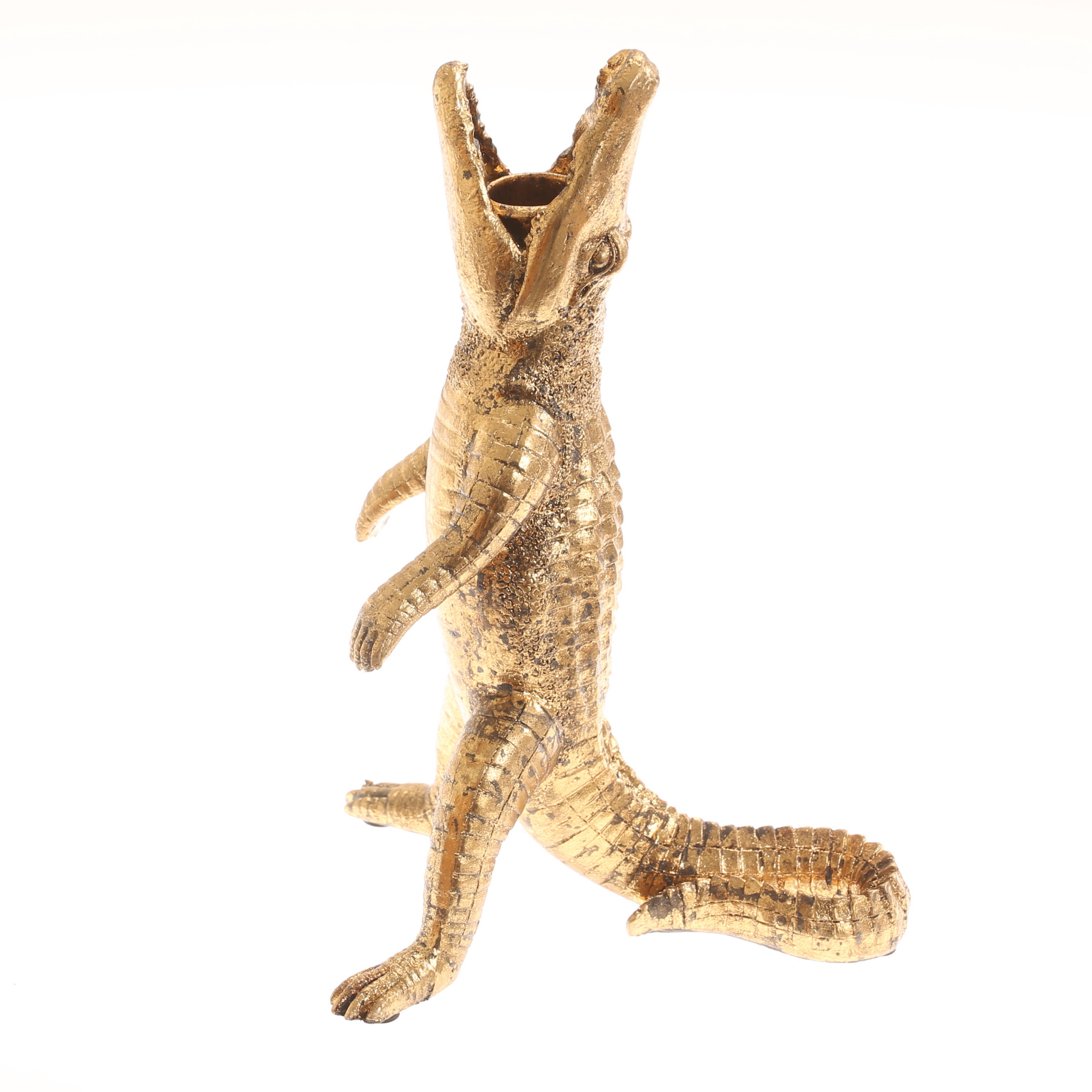 4701278. KYNTTILÄNJALKA, krokotiilin muotoinen, polystone, nykyaikainen.