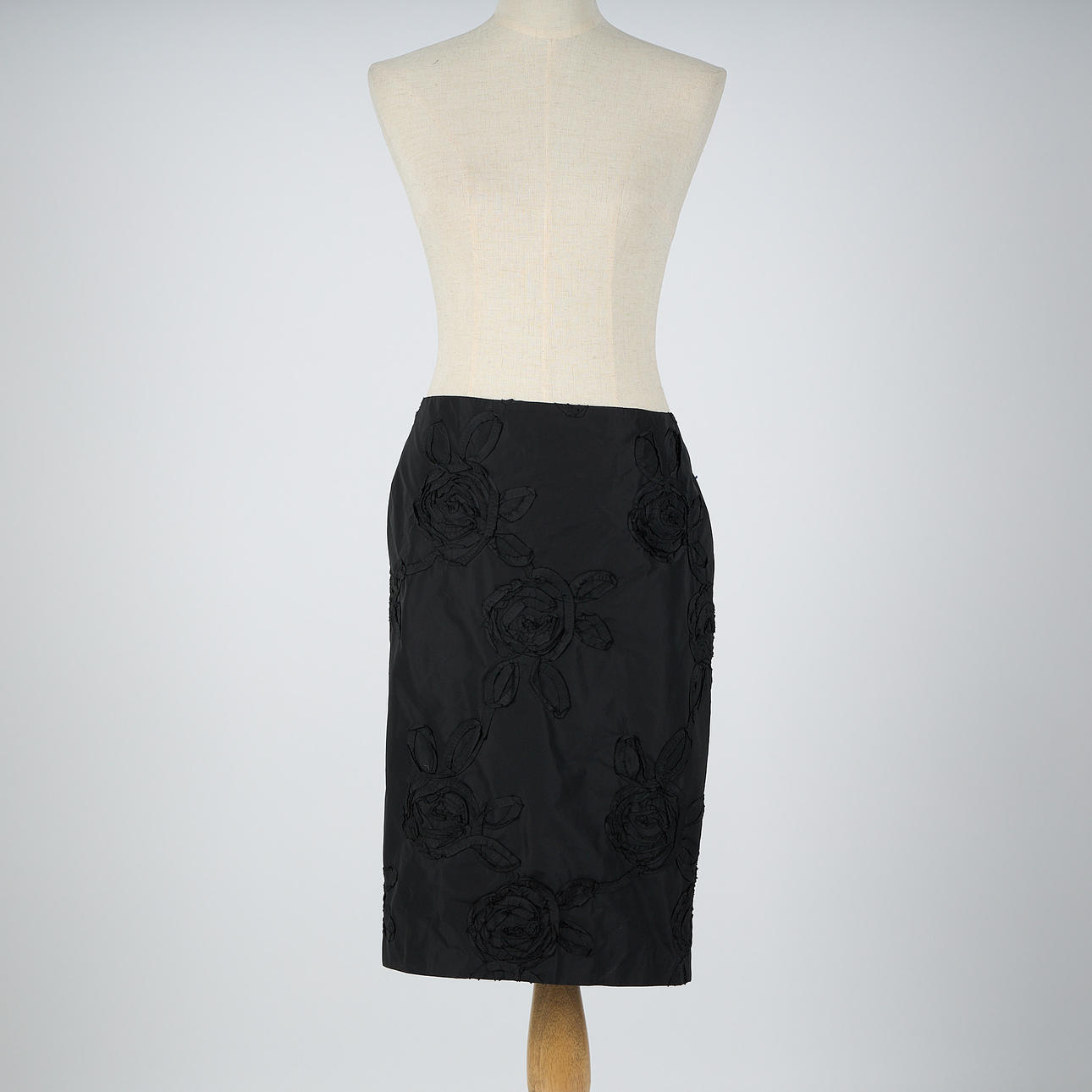 Koko n. M/L Takin selän pituus 98 cm, rinta 62 cm, hiha 53 cm. Hameen vyötärön 46 cm, pituus 59 cm.
