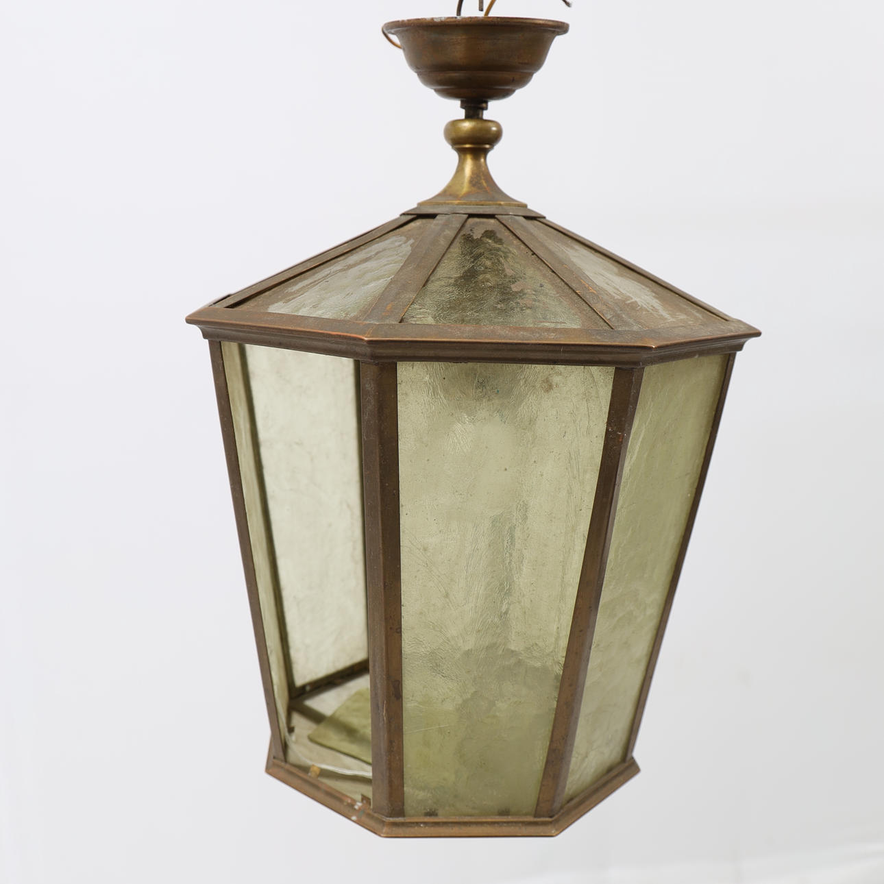 Messinkiä, keltasävyiset lasit. Korkeus 43, leveys 32 cm.