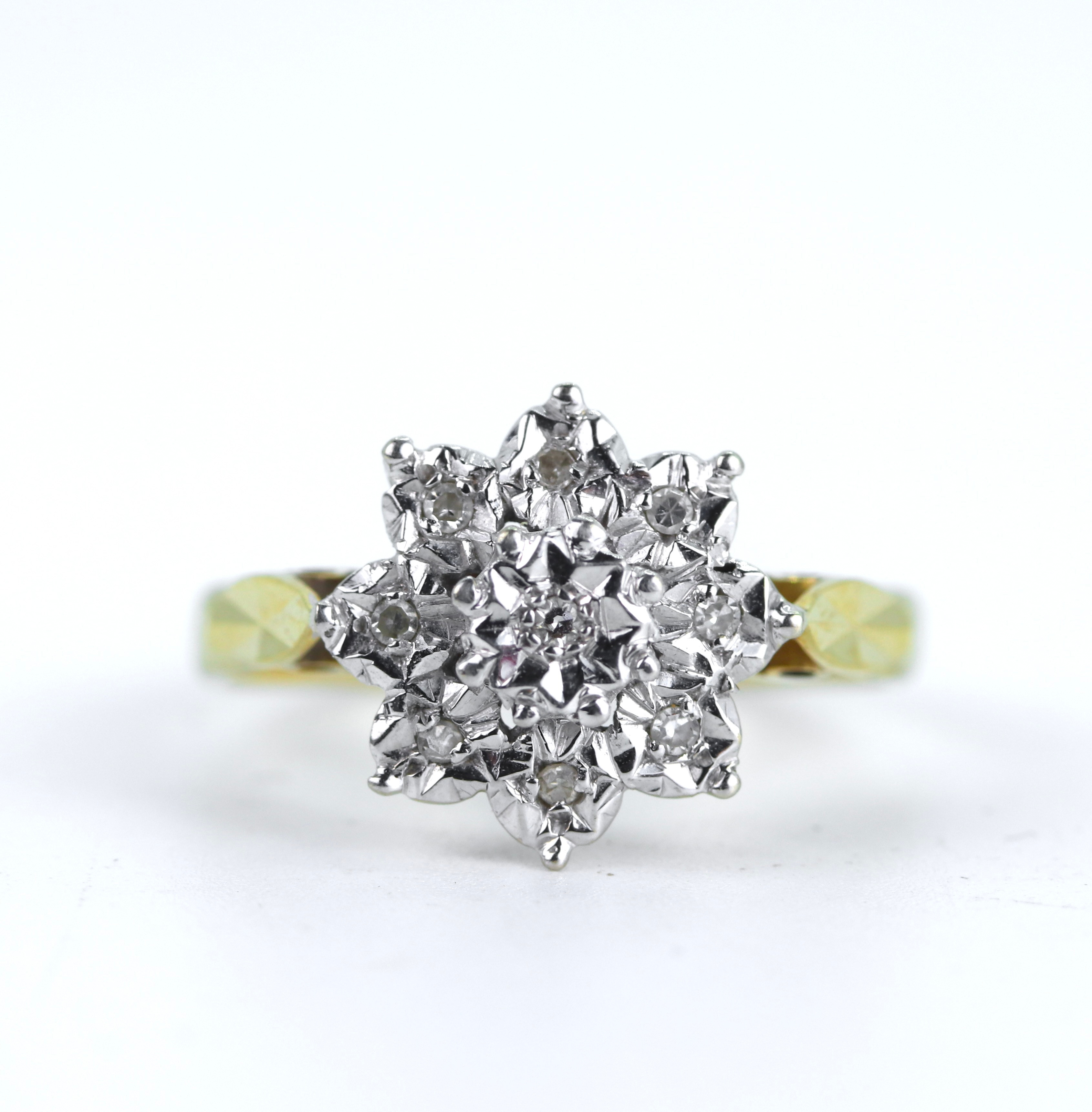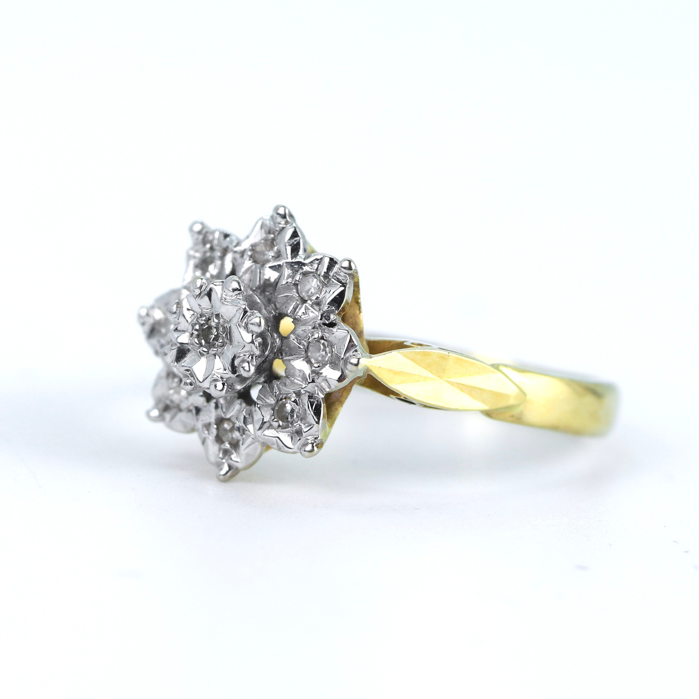 4868805. 18KT KULTAA JA TIMANTTI-SETTI KLUSTERORMUS.