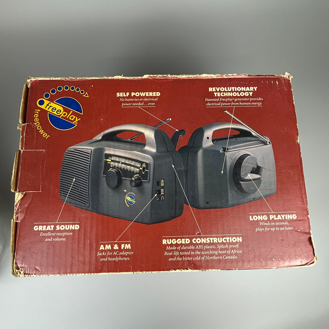 4980587. LAATIKKOINEN PERSPEX-TUULETUSRADIO.