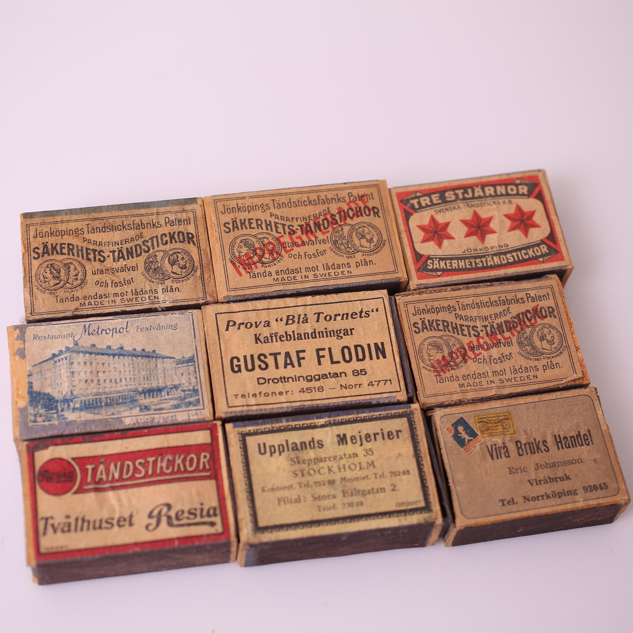 Tulitikkurasiat, 9 kpl, ilman tulitikkuja.