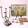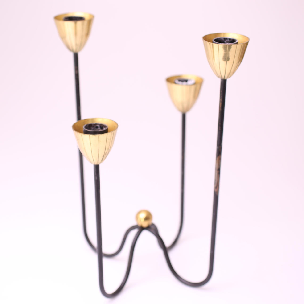Kynttilänjalka, metallia, neljä kynttilänvartta kynttilänjaloilla, korkeus 28 cm.