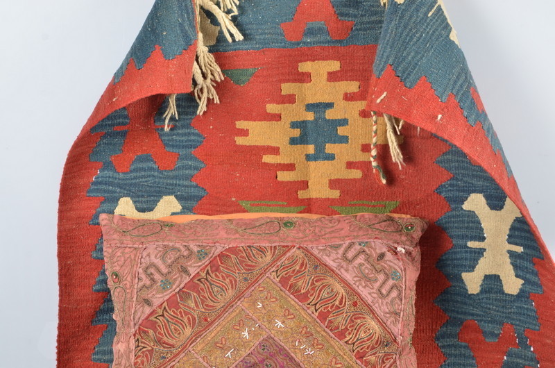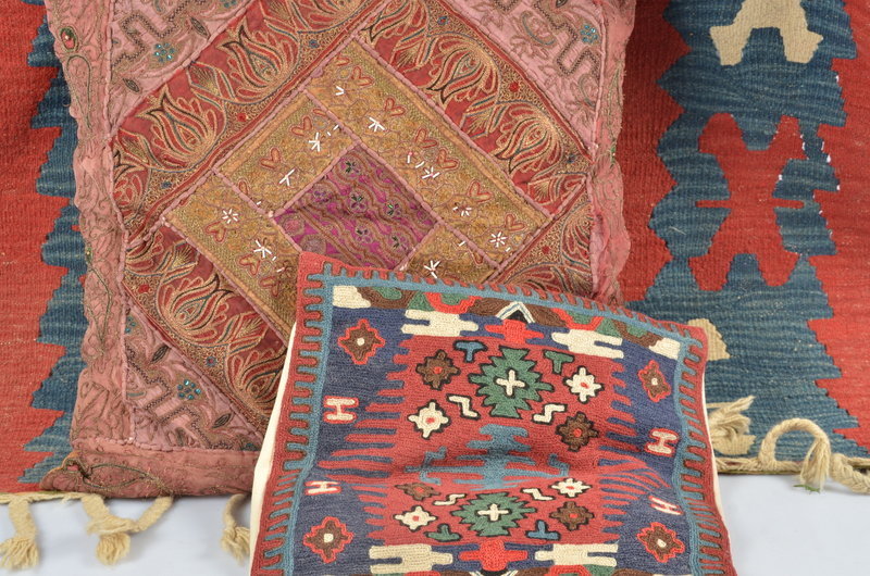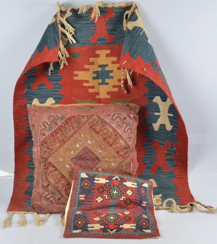 499106. MATTO, Kilim ja 2 vanhempaa tyynyä.