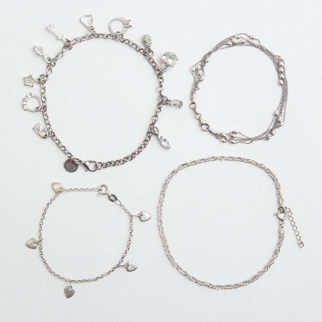 4996970. RANNEKORUT, 4 st, hopeaa, 1900-luku.
