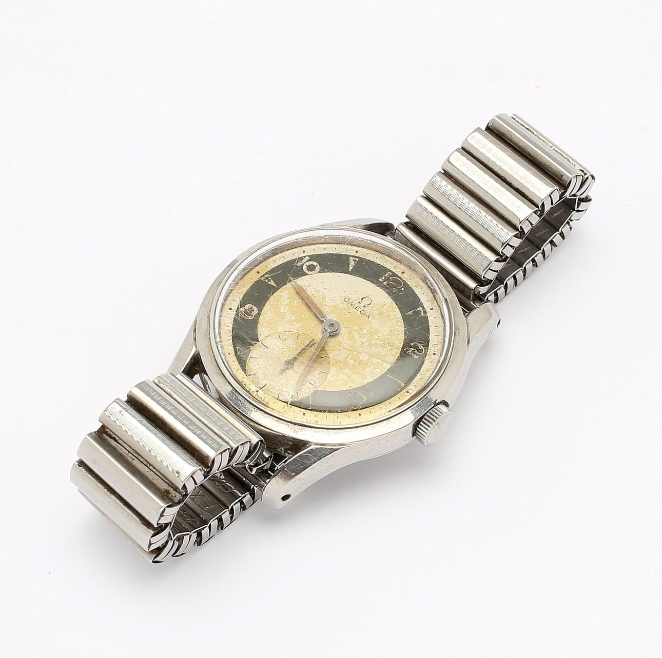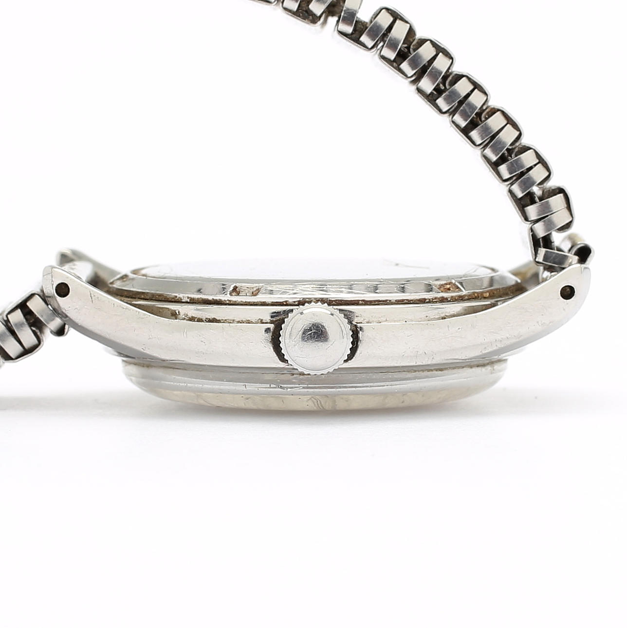 Manuaalinen. Kaksisävyinen kellotaulu, jossa sekuntiosoitin. Halkaisija noin 37 mm.