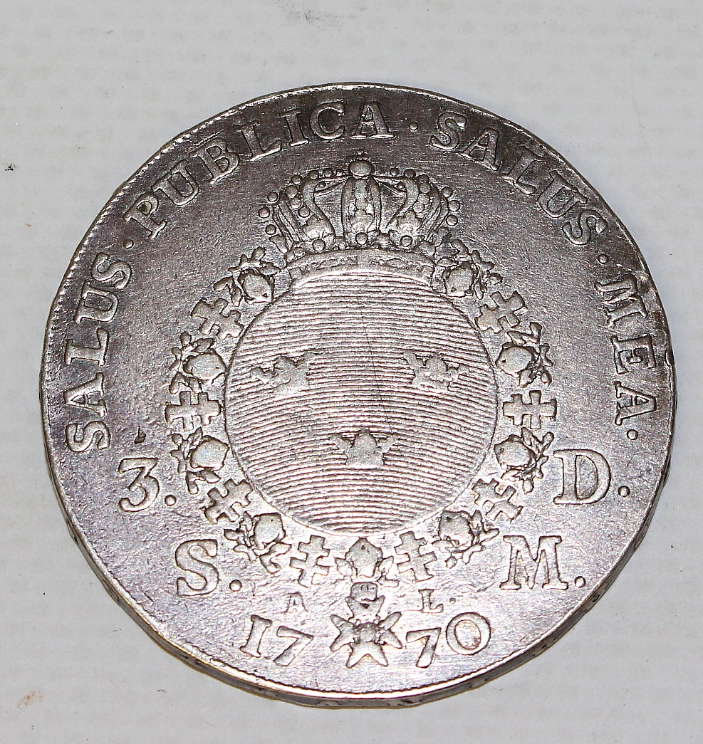 523754. KOLIKKO, 3 daleria, hopea, 1770.