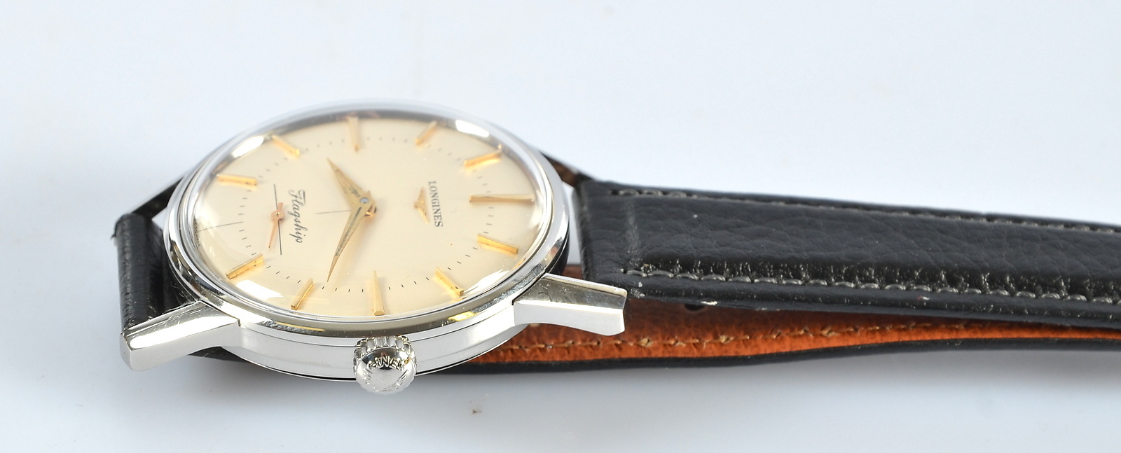 524423. MIESTEN RANNEKORU, Longines Flagship, terästä.