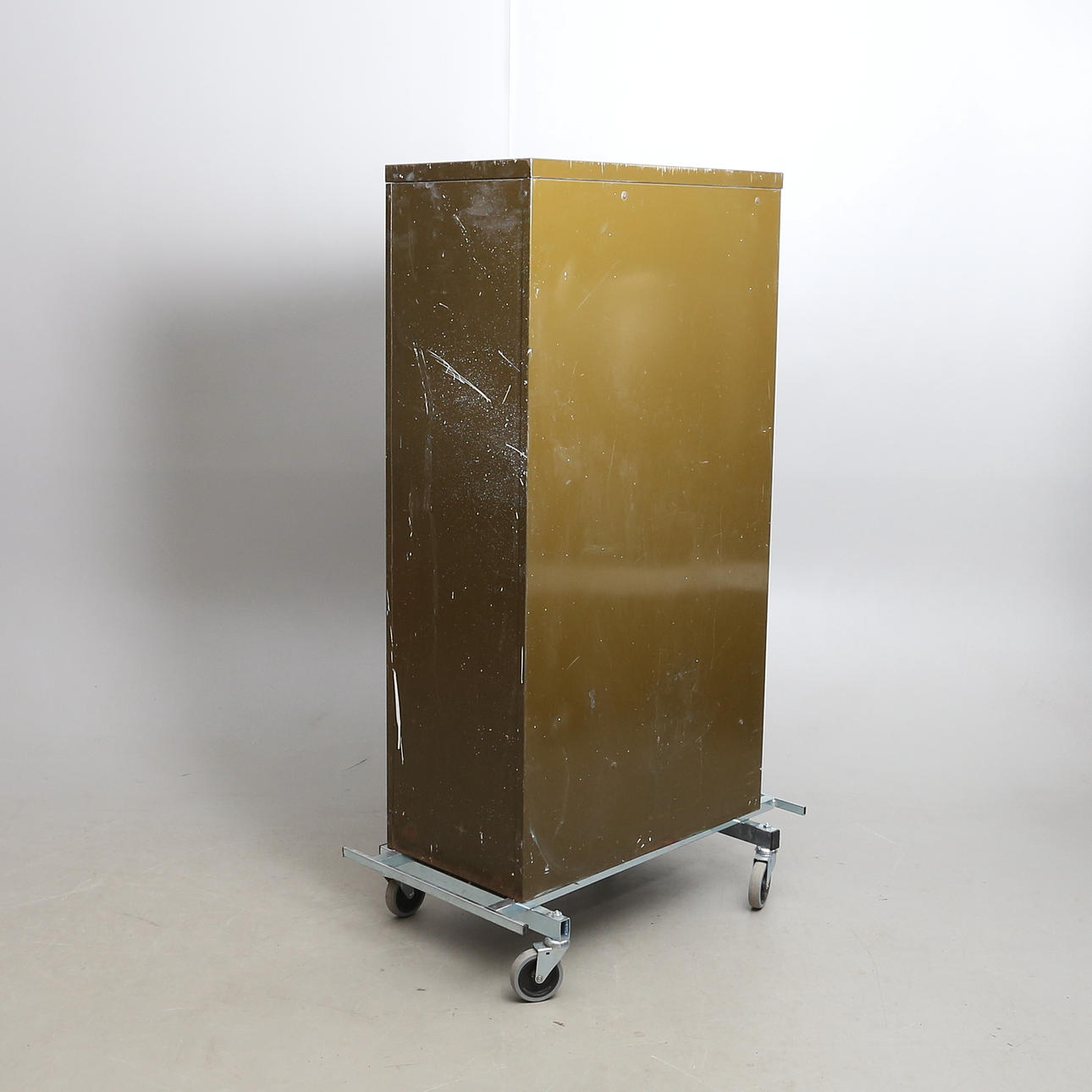 Kulumaa, naarmuja, maalitahroja. Hieman ruosteinen. Lukko ei toimi.