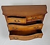 Lipasto - antiikkihuonekaluja, puuta, kaarevat reunat, kaarevilla jaloilla kaarrettu etuosa, kaksi isoa ja kaksi pientä laatikkoa edessä, nauhaupotus, osittain kaiverrettu, rocaille-aiheiset helat, n. 77x100x41cm.