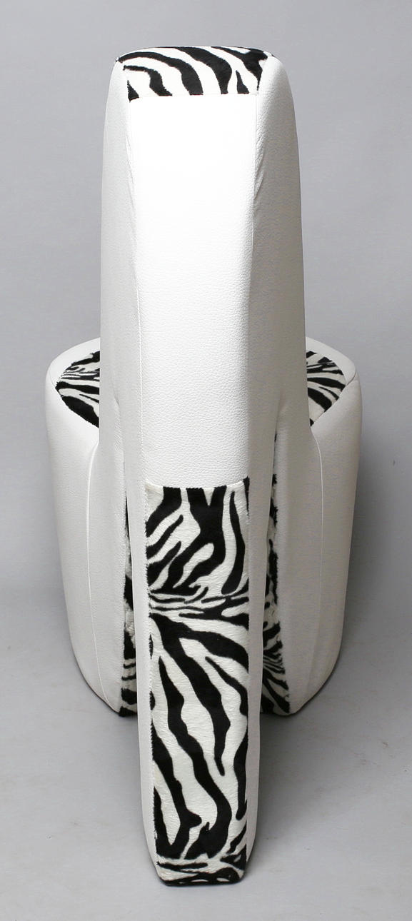 Täysin päällystetty laadukkaalla keinonahalla ja seepraturkista jäljitelty Lara valkoinen, verhoilu täyte: vaahtomuovi, alusrakenne: puu, 100 cm x 95 cm x 45 cm.