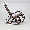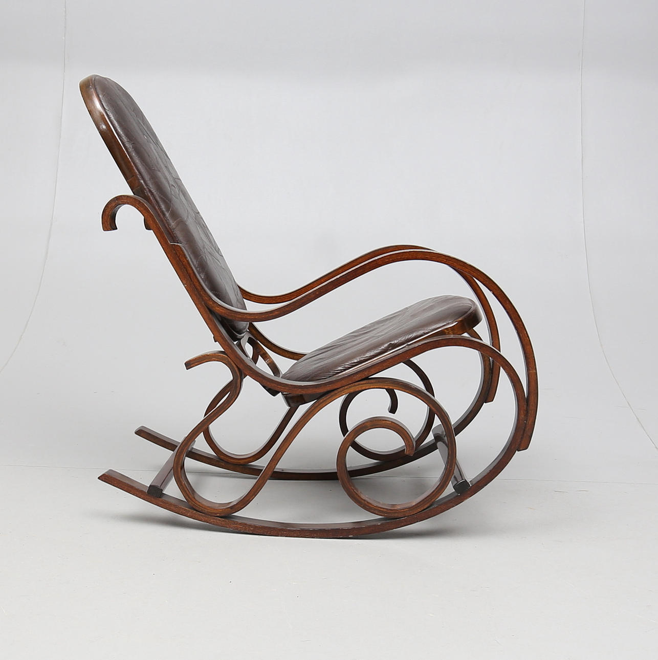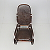 Runko petsattua kovapuuta. Kiinteä verhoiltu selkänoja ja istuin. Verhoilu nahkaa.