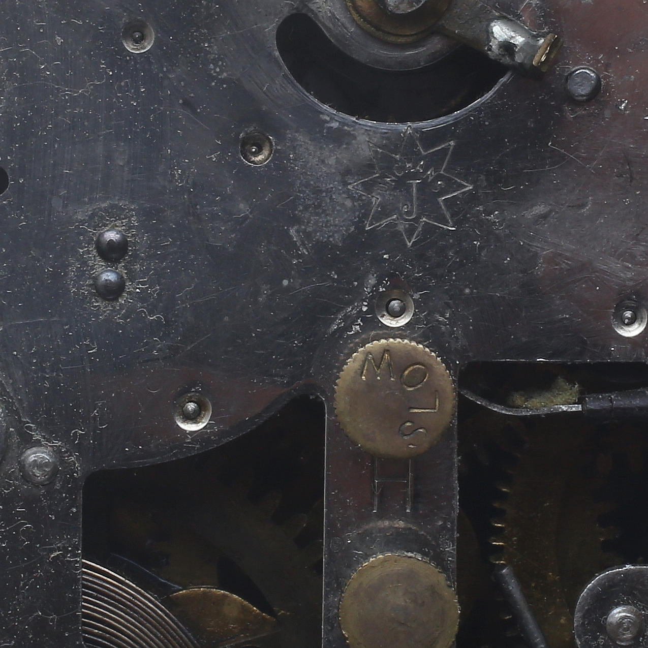 Merkitty kellotauluun ja liikkeeseen. Korkeus kädensijan kanssa 18 cm.