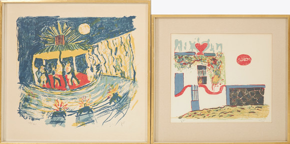 Värilitografiat, 4 kpl, signeerattu Berndt-Rune Jäverbrant, päivätty 88. Kolme merkkistä EA:ta. yksi numeroitu 356/360 Päiväkoko 35,5 x 48 cm, passepartout 45,5 x 58 cm.