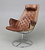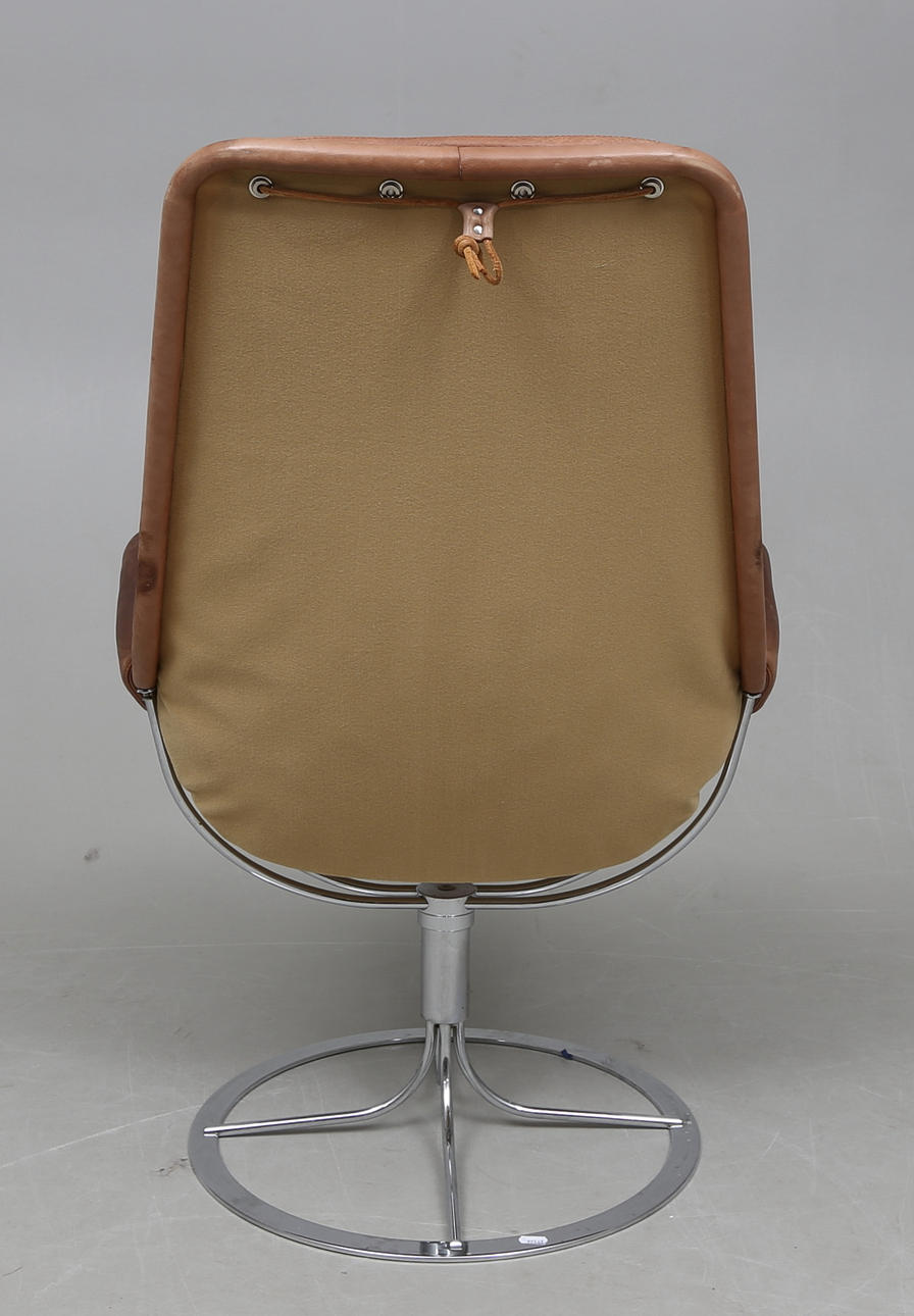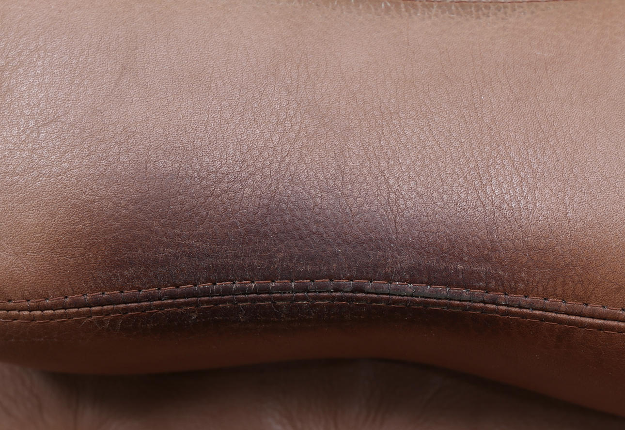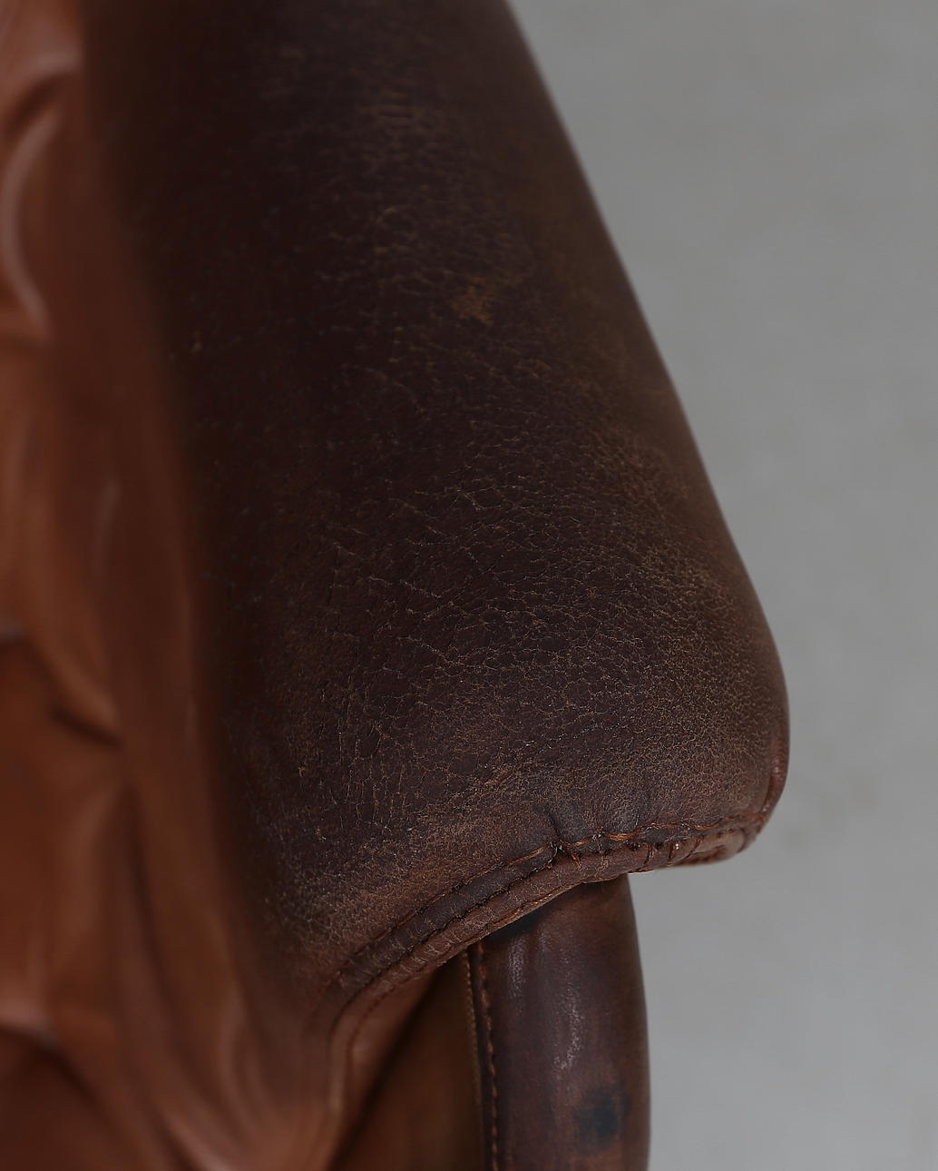 Ruskeaa nahkaa. Kromattu jalkojen asento. Merkitty.