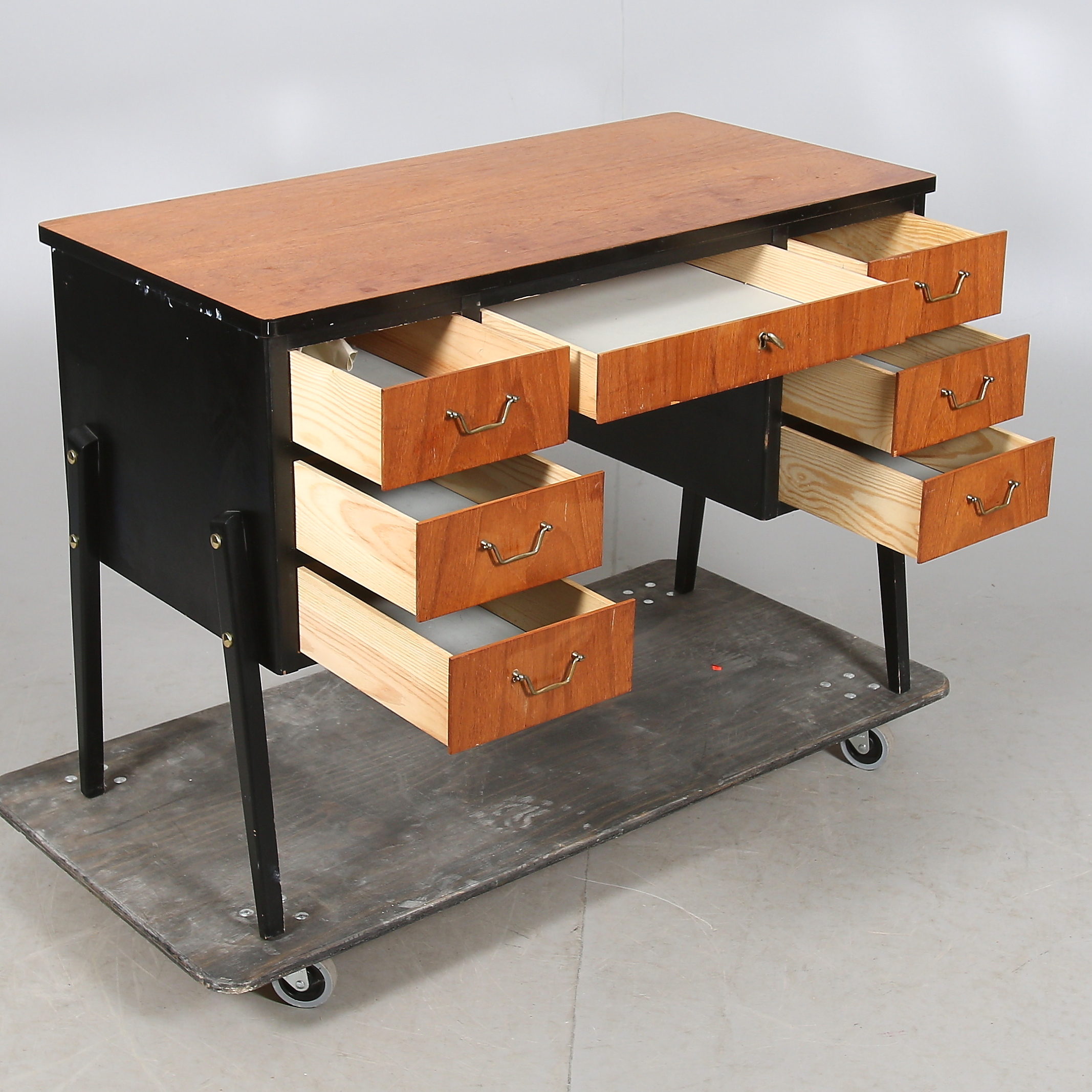 672045. TYÖPÖYTÄ, tiikki, 1950-luku.