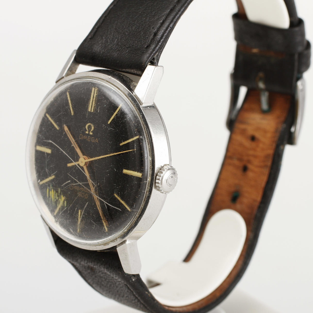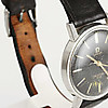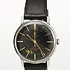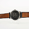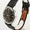 Teräskotelo mustalla nahkahihnalla. Halkaisija 3,5 cm.