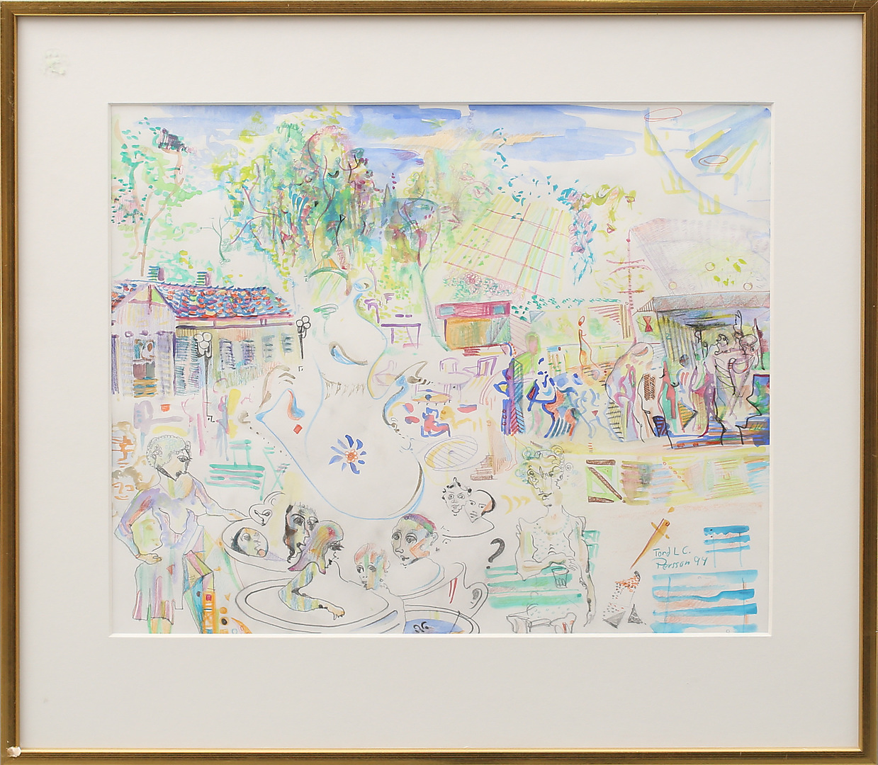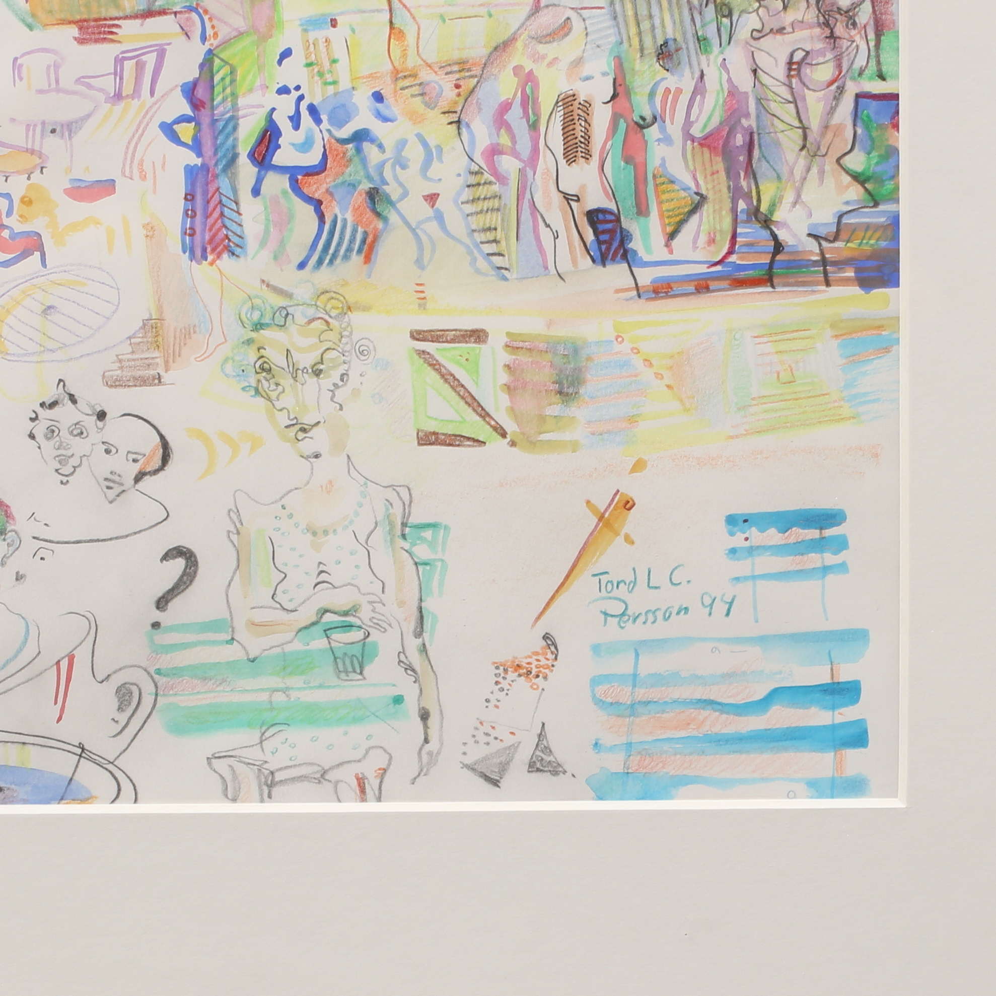 744341. TORD LC PERSSON. piirustus, sekatekniikka, "Folkets park", signeerattu ja päivätty 94.