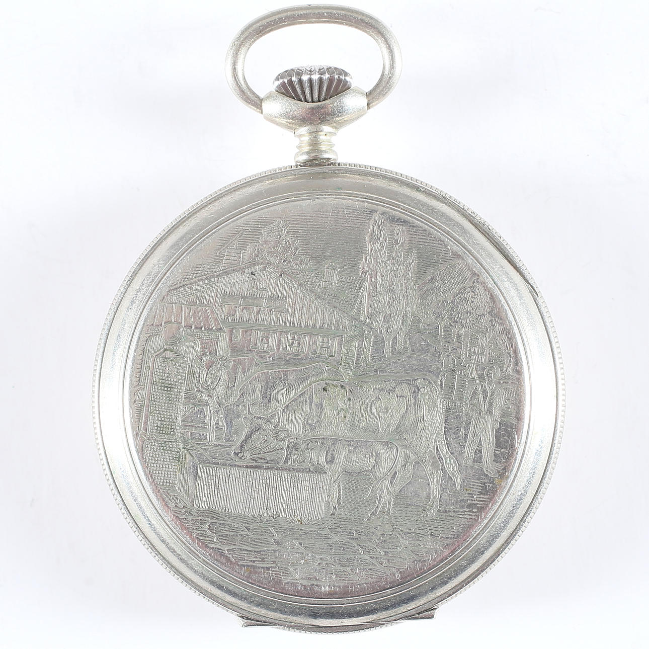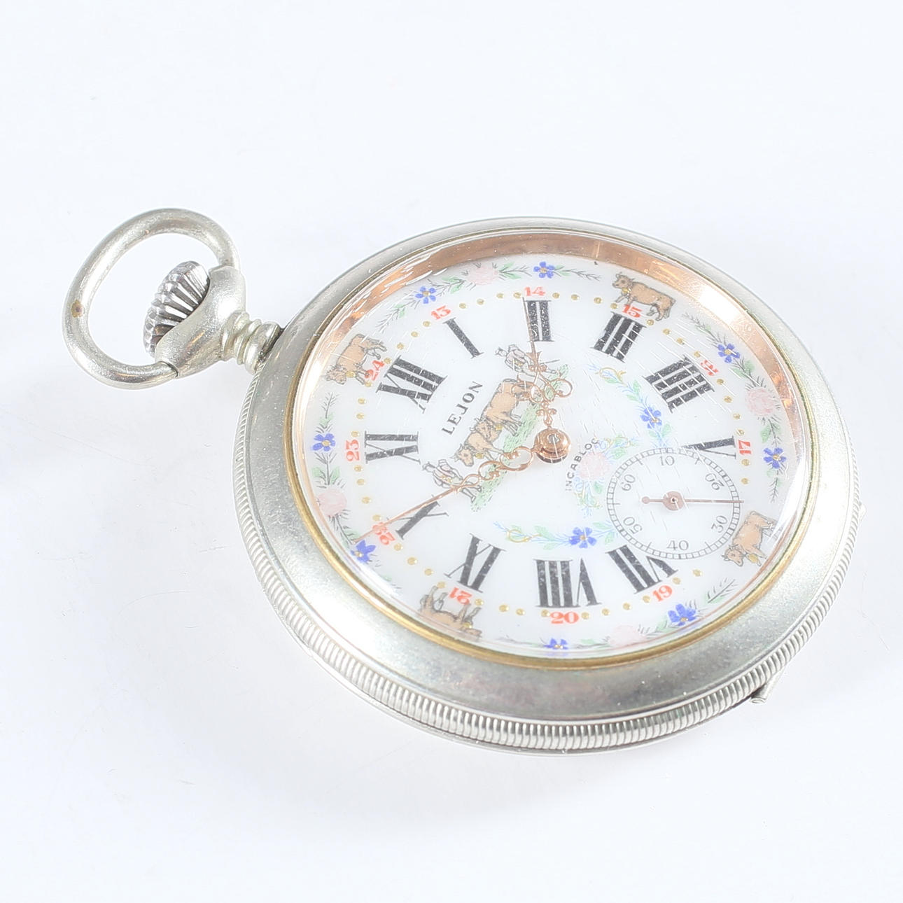 Kellotaulu ja takakotelo lehmien kuvioilla.