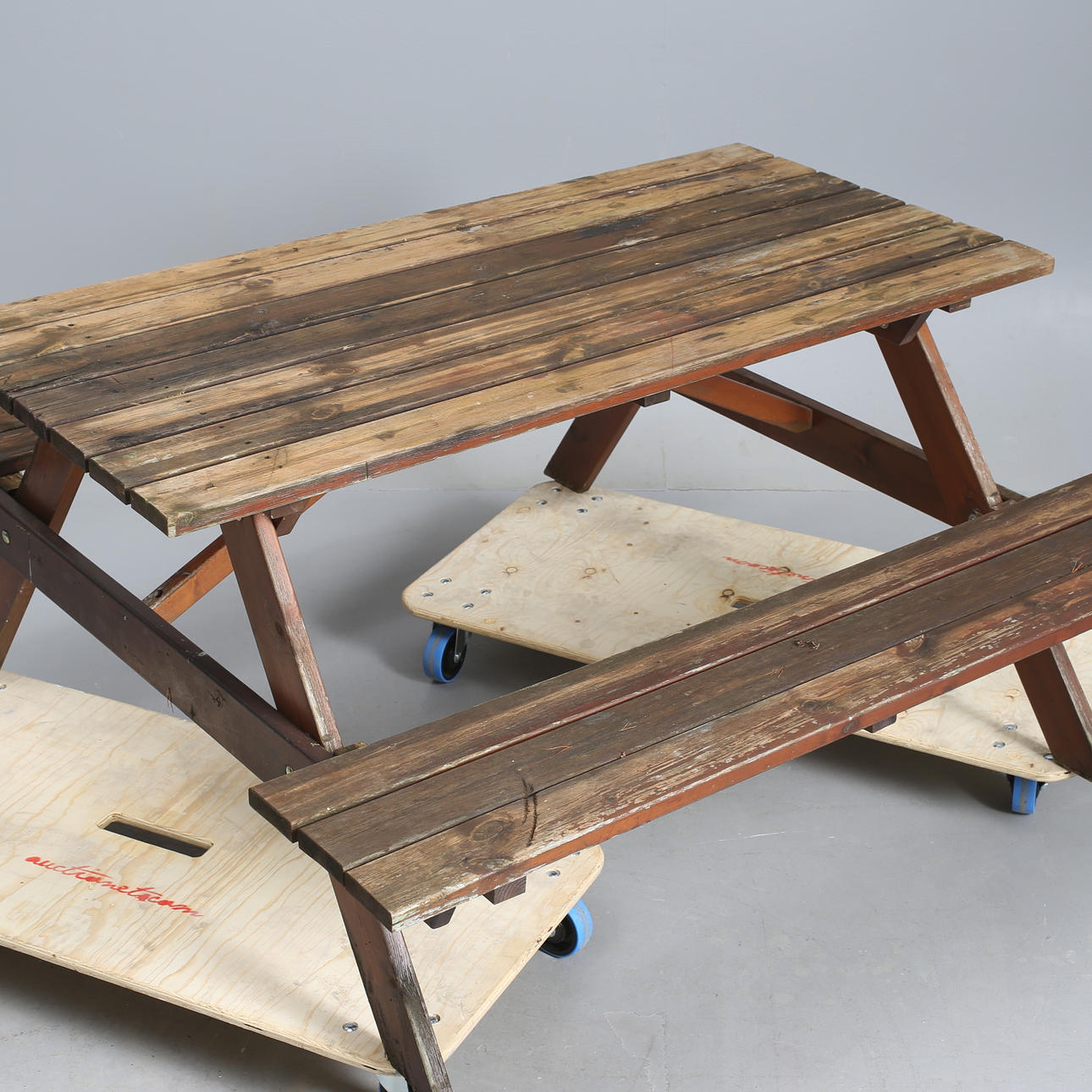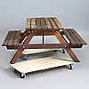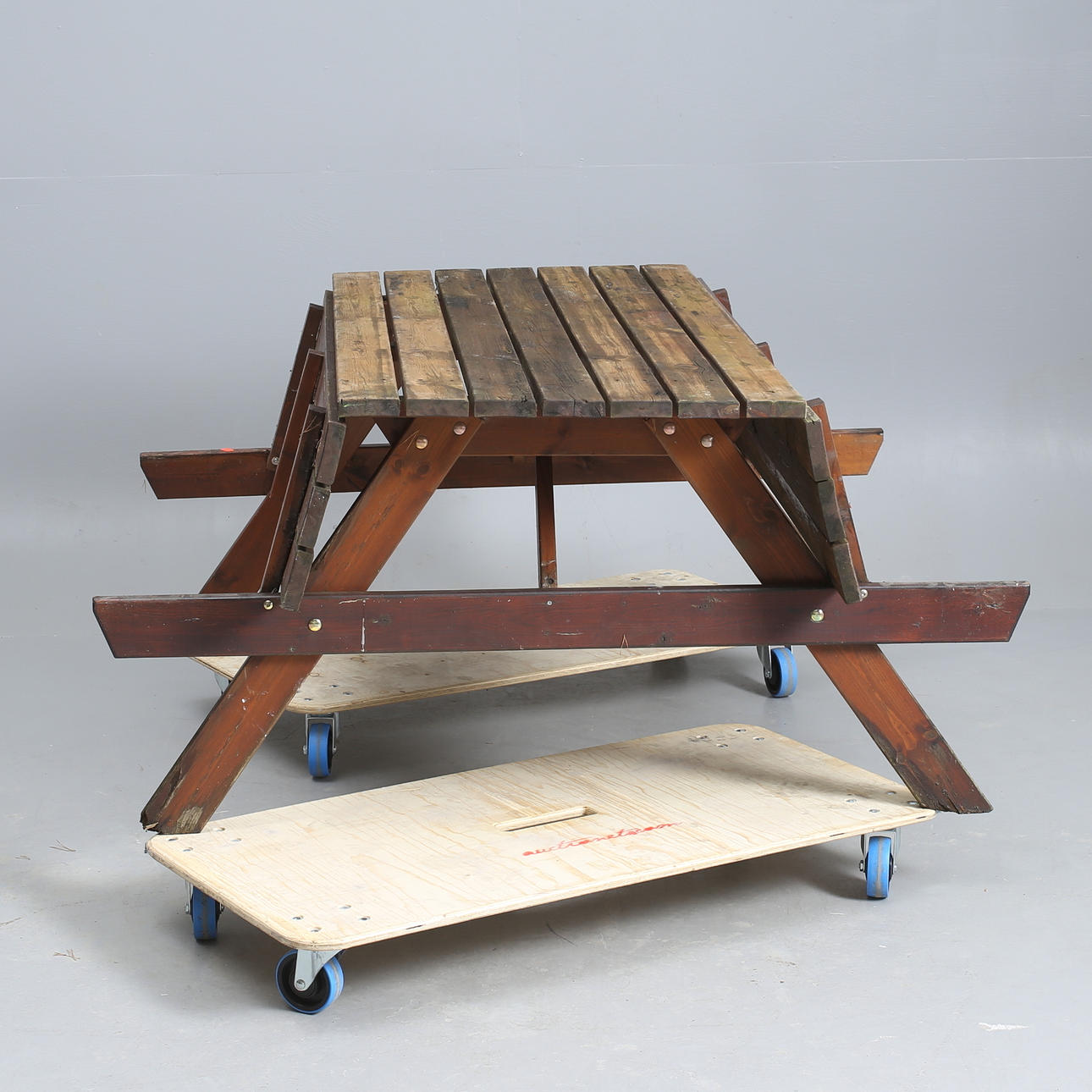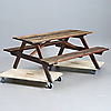756867. ULKOKALUSTEET, penkki pöydällä, puuta.