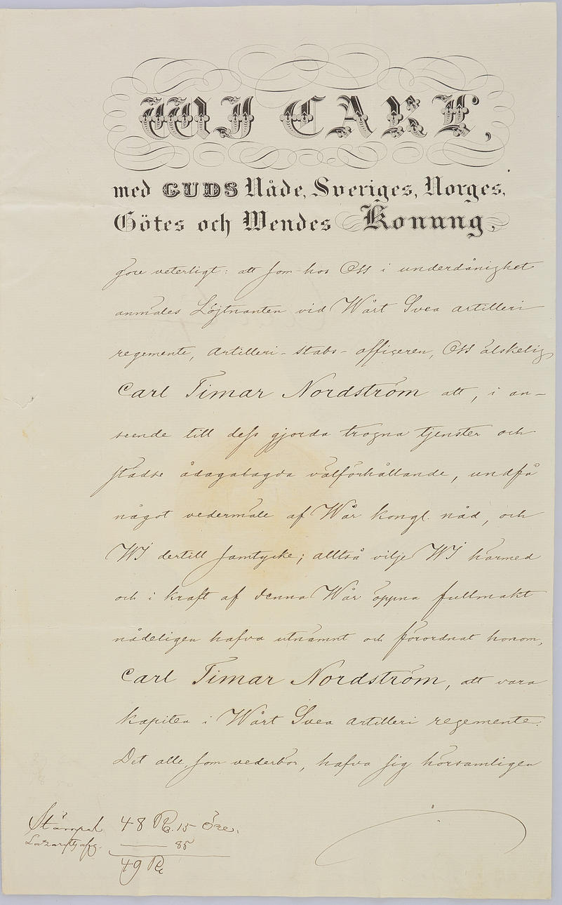 AUTOGRAFIA/KÄSIKIRJAUS, Carl XV.