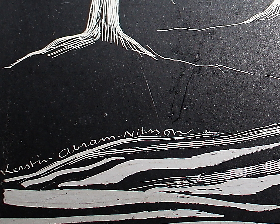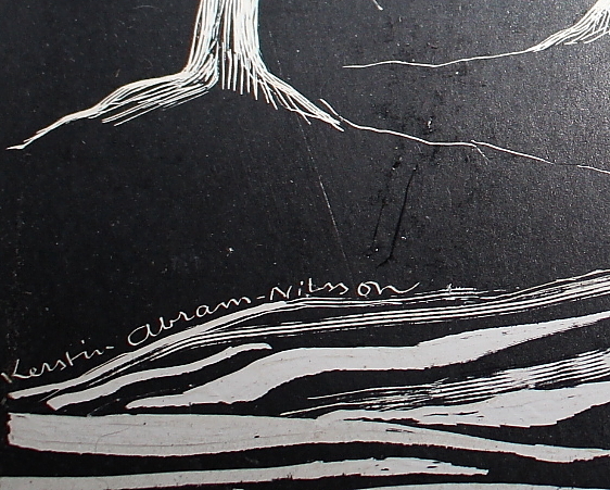 791829. KERSTIN ABRAM-NILSSON. Piirretty, puu, kyltti.