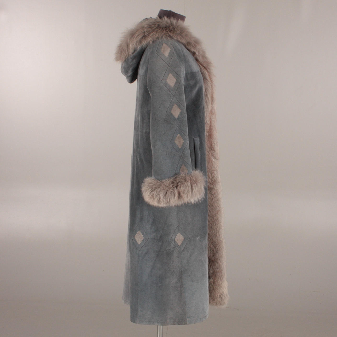 Nahkaa ja turkista. Koko C34 Rinnanympärys, 80 cm Vyötärönympärys, 90 cm.