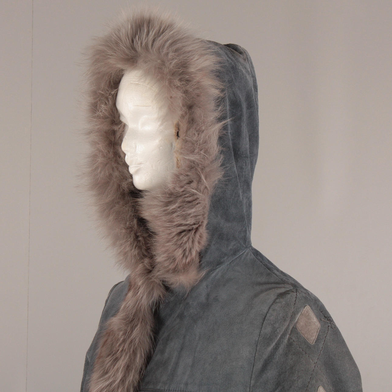 Pientä kulumaa, vasemmassa olkapäässä sauma noussut, hupussa pieni reikä.