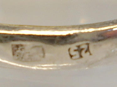 Sormus on valmistettu 925 hopeasta ja merkitty vastaavasti sekä valmistajan merkki SZ ja vanha postimerkki Danzigista, jossa naisen pää, hienous ja kirjain "G" Gdansk = Danzig.
