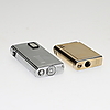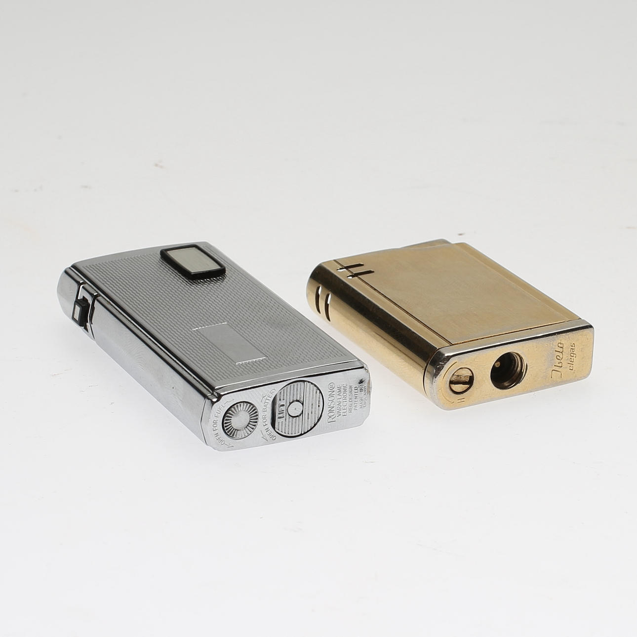 Valkoinen metalli ja messingin värinen metalli. Korkeus noin 5,5-7 cm.