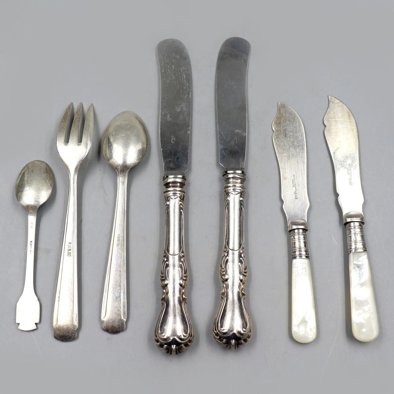 Haarukka ja lusikka, sterlinghopea leimattu RUB90.