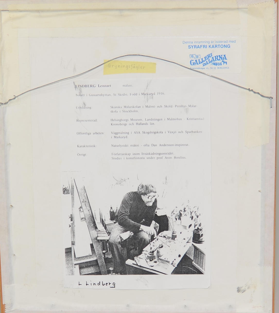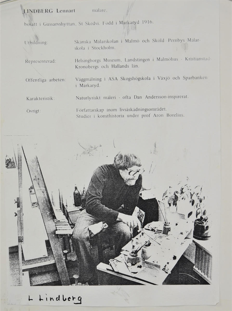 11,5x13,5 cm. Allekirjoitettu L Lindberg.