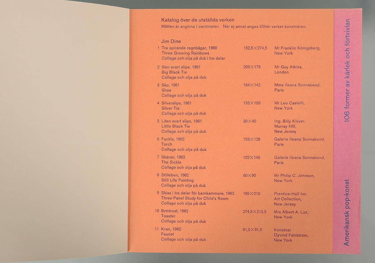 911069. NÄYTTELYLUETTELO, Moderna museo. Amerikkalainen pop-taide.