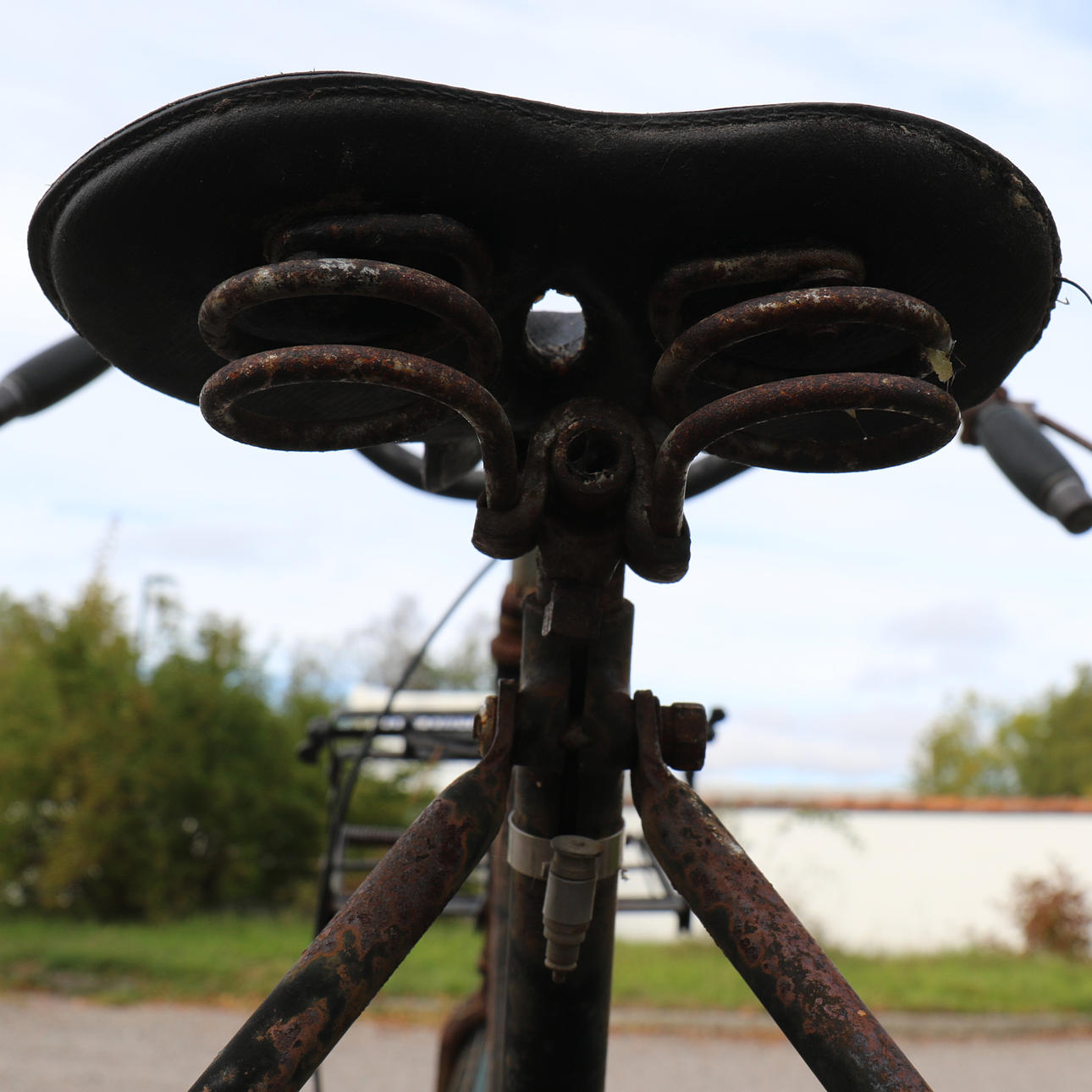 Edessä käsijarru, alkuperäinen nahkainen satula.