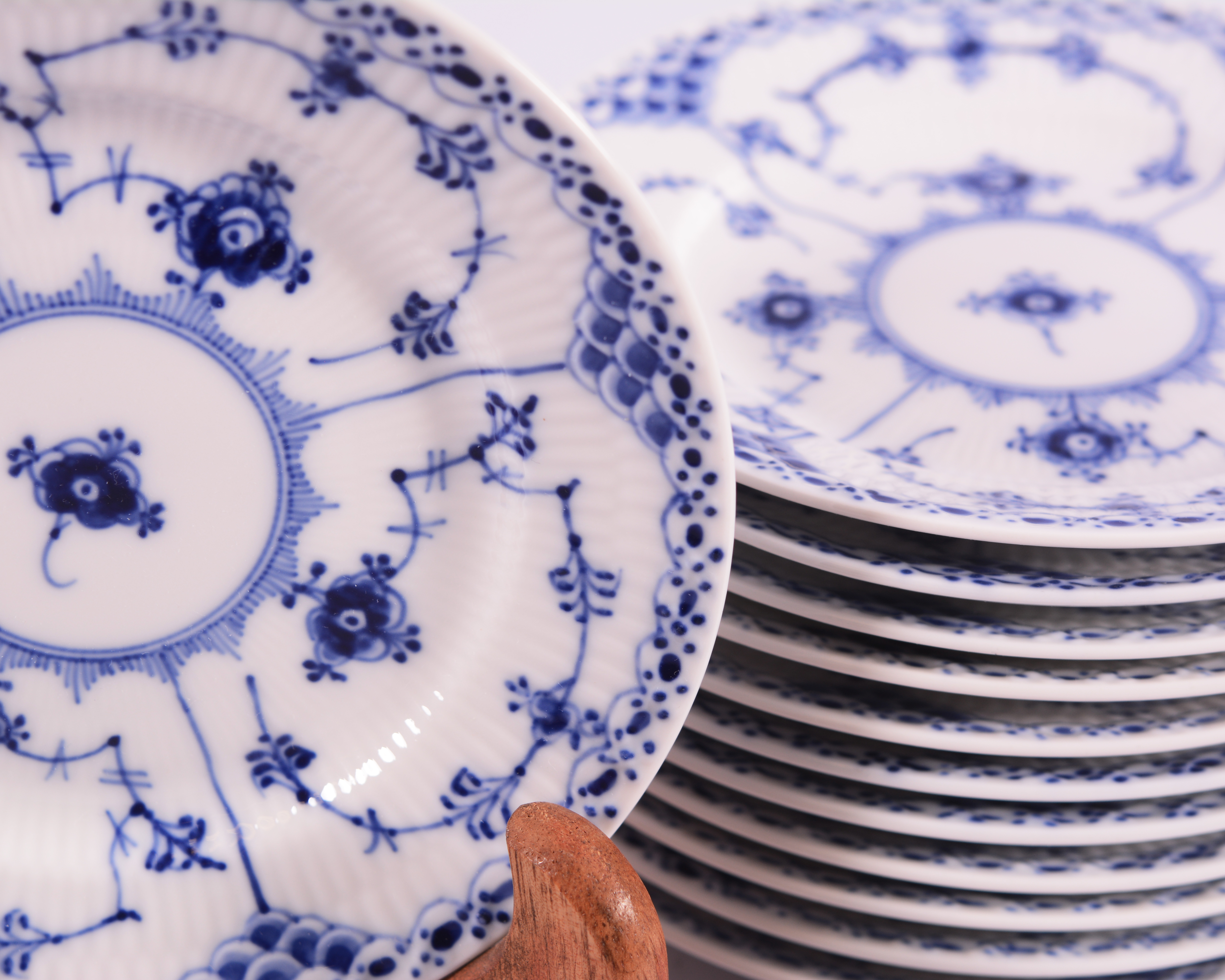 945699. LAUTA, 12 kpl, "Musselmalet" puolivaalea, Royal Copenhagen Denmark.