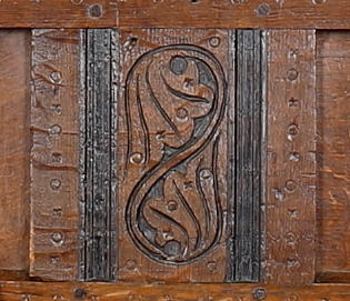 Mahdollisesti myöhemmin koristeltu. Pituus 147 cm x 96 cm korkea x 8 cm syvä.