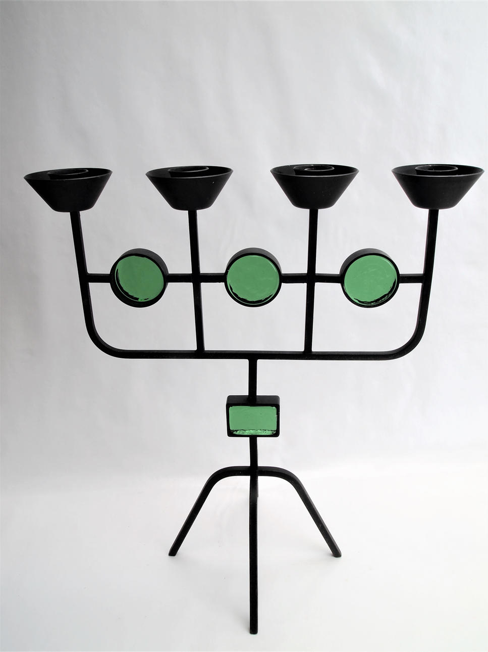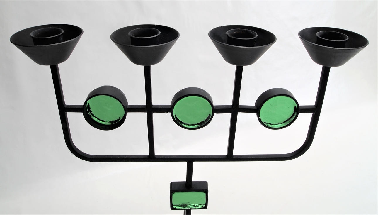 Takorautaa ja lasia. Korkeus 32,5 cm, leveys 28 cm.