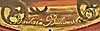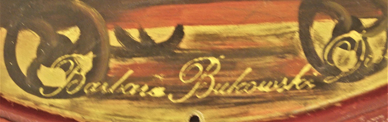 Maalattu soikea puulevy. Korkeus 25 cm, pituus 35 cm.