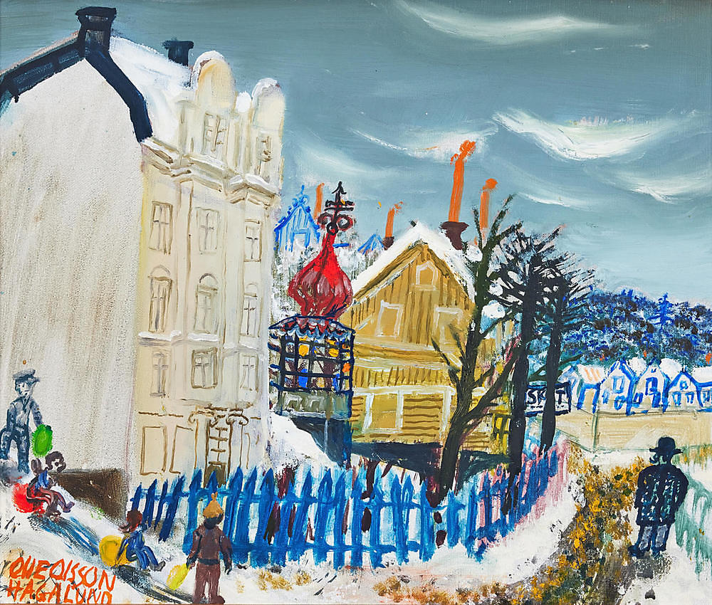 Though largely self-taught, Olsson gained widespread recognition during his lifetime. He exhibited regularly from the 1940s onward, and his home in Hagalund became both a studio and a local landmark—later preserved as a museum. Today, Olsson is considered a leading figure in Swedish naïvist art, and his work continues to resonate for its sincerity, distinct visual language and affectionate documentation of a disappearing way of life.