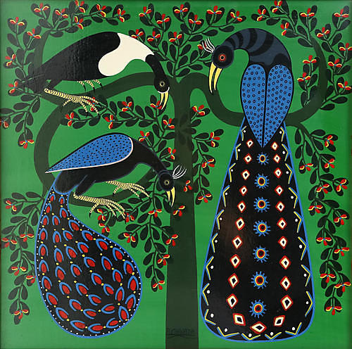 "Peacocks", lacquer color on Board, clubbed for 232 GBP at Kalmar Auktionsverk.