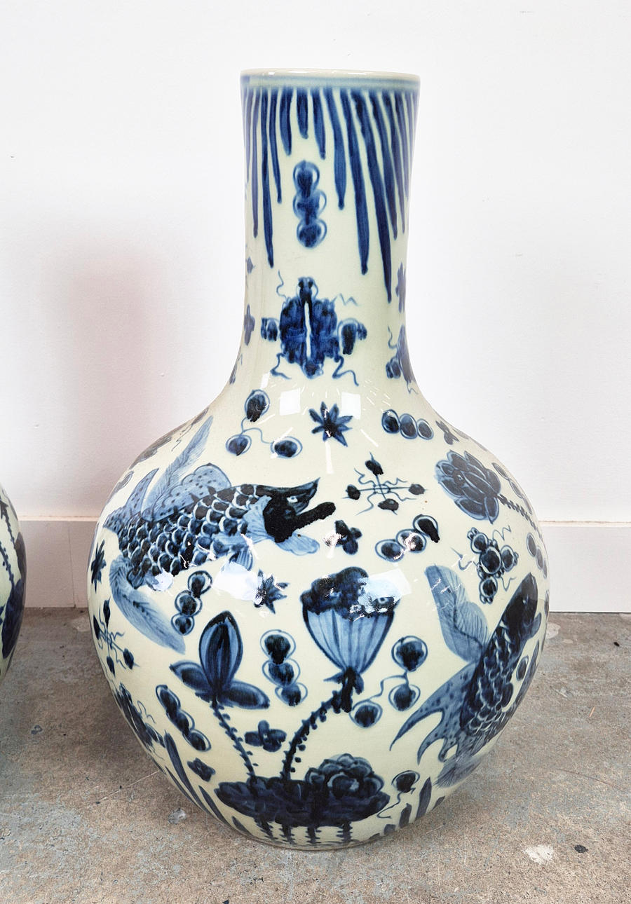 Pari, kiinalaistyylinen sinivalkoinen keramiikka, 59cm H n. (2).