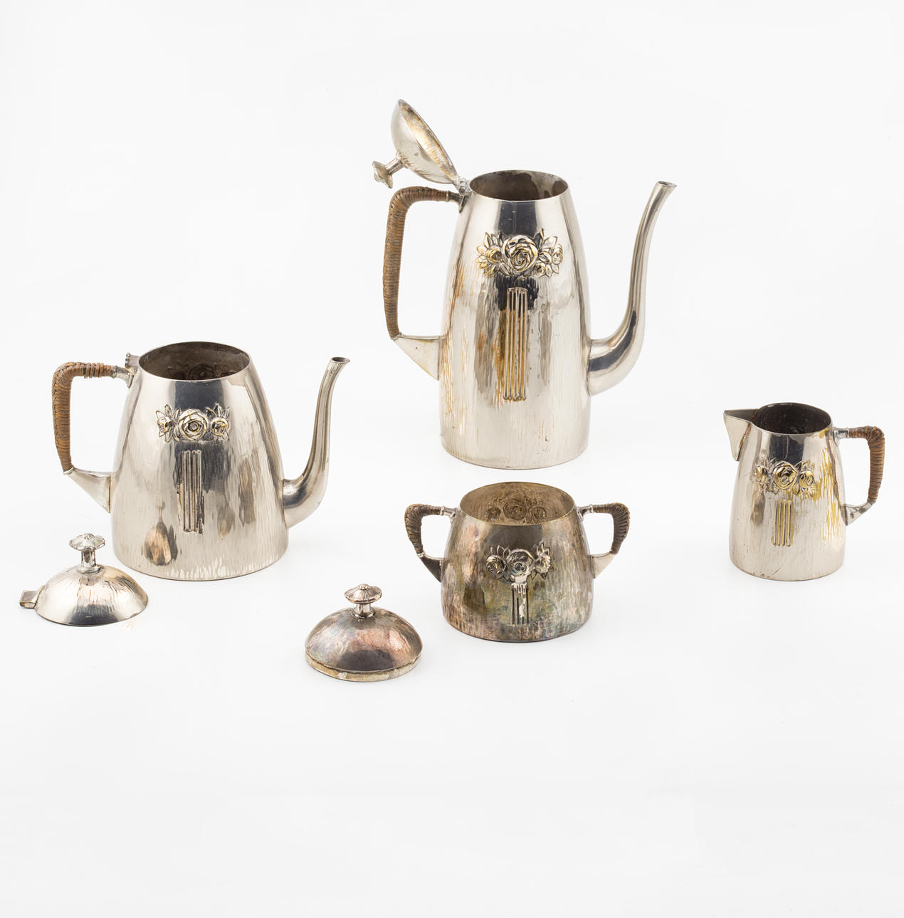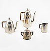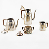 Beståenda av kaffekanna, tekanna, mjölkkanna samt sockerskål. Kaffekannan 23x19x10,5 cm.