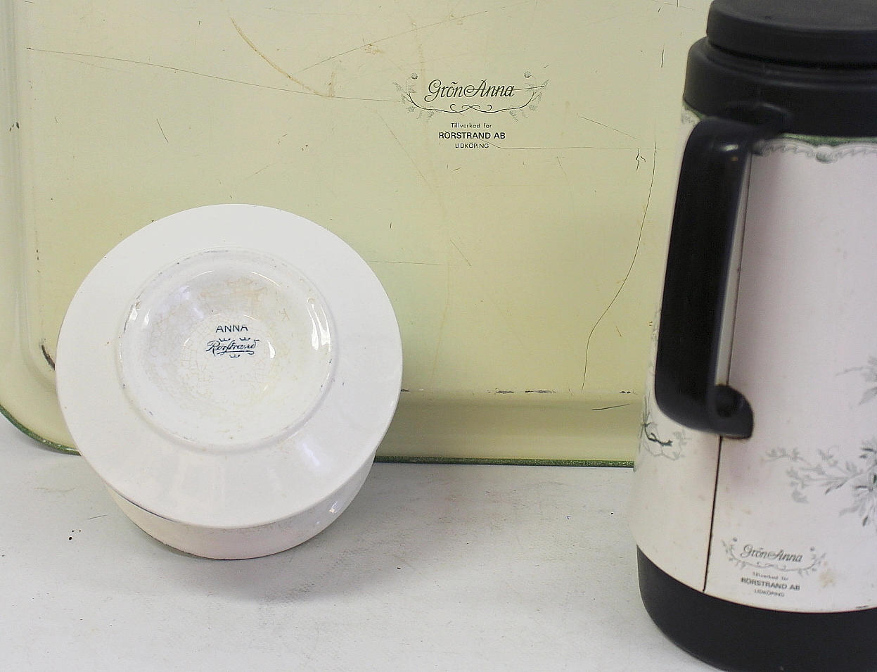 "GRÖNA ANNA" Rörstrand, Termos och Bricka, Såsskål.